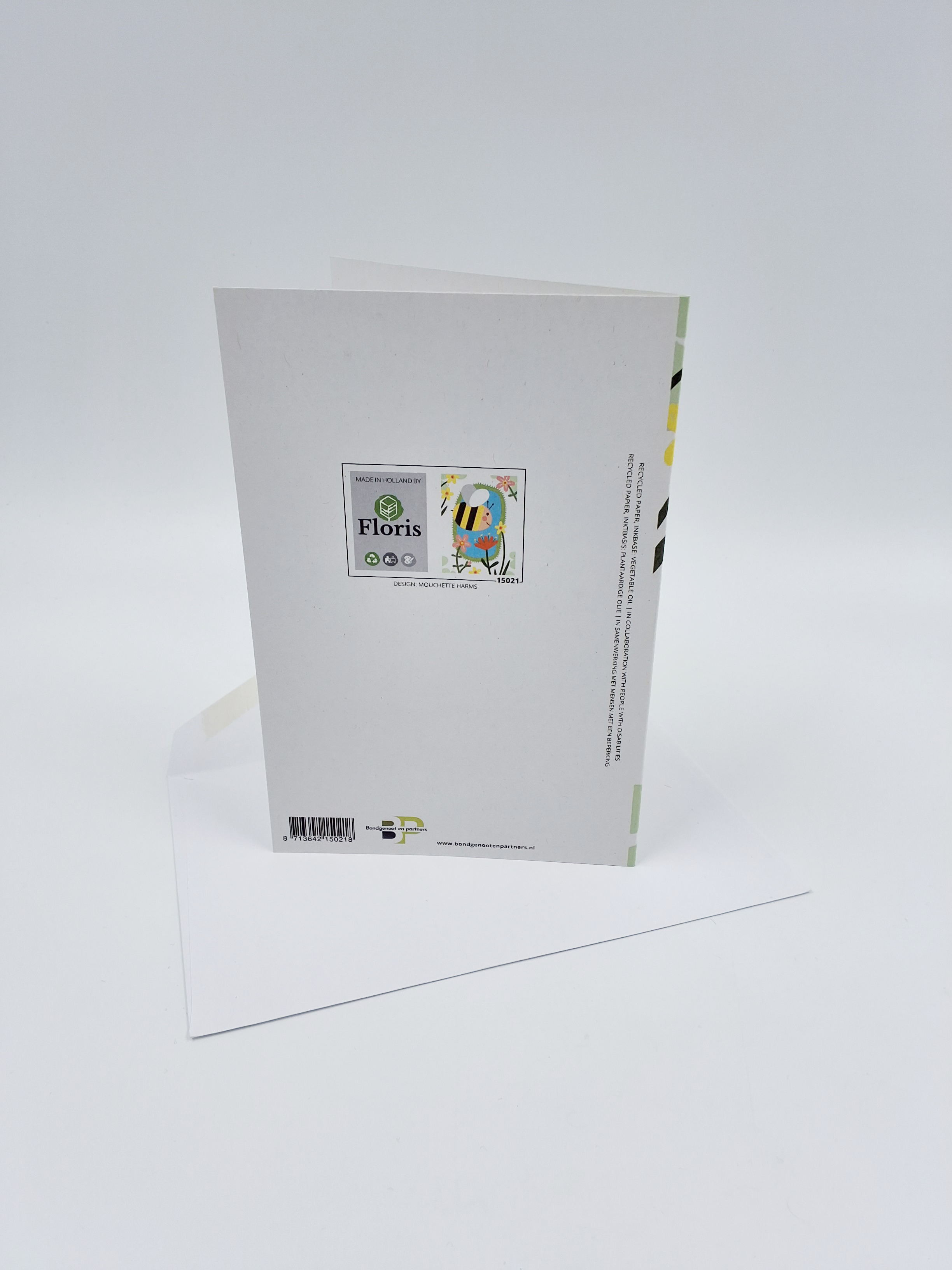 Onze wenskaarten zijn gemaakt van gerecycled papier en bedrukt met inkt op basis van plantaardige olie.