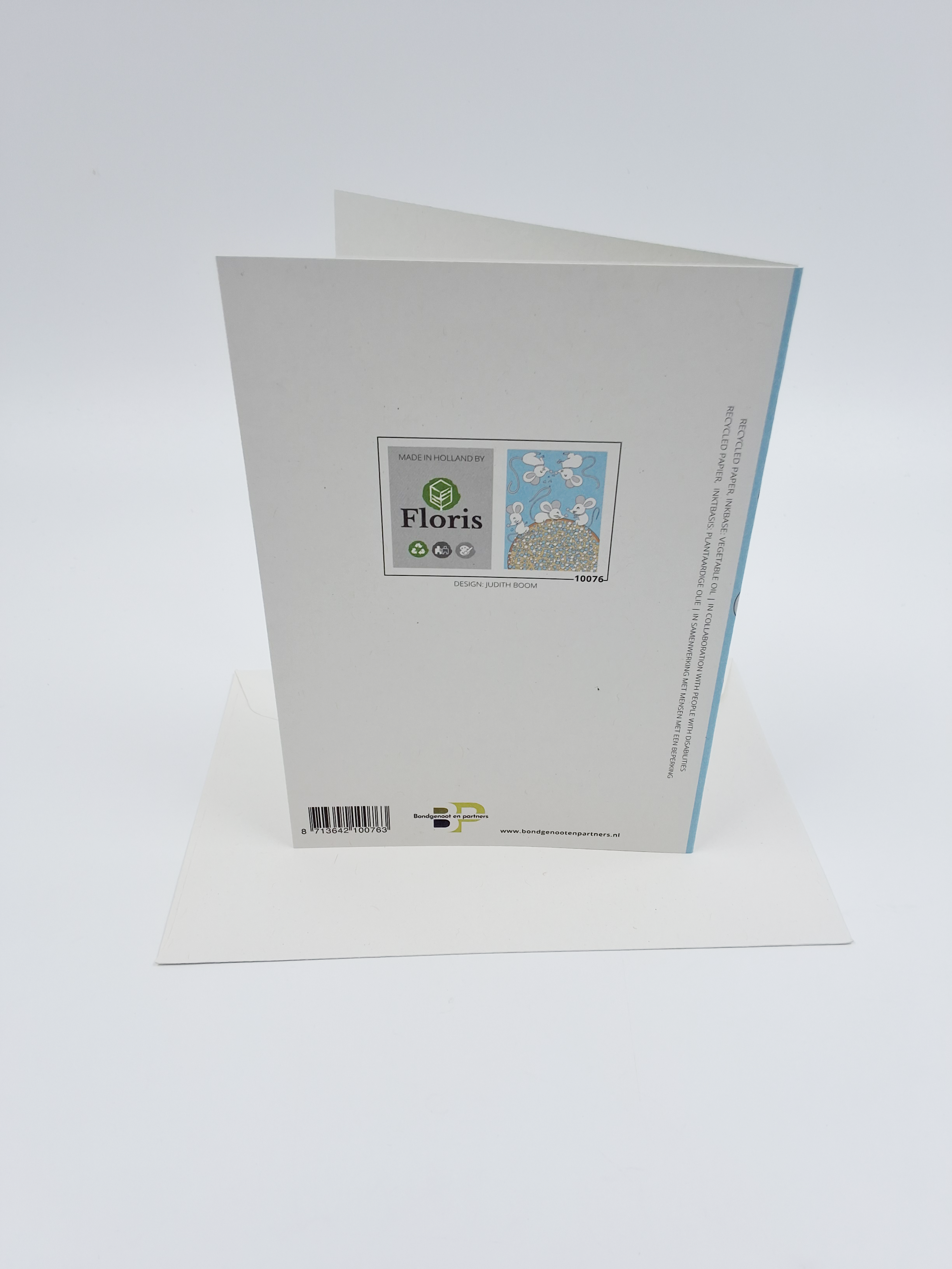 Onze wenskaarten zijn gemaakt van gerecycled papier en bedrukt met inkt op basis van plantaardige olie.