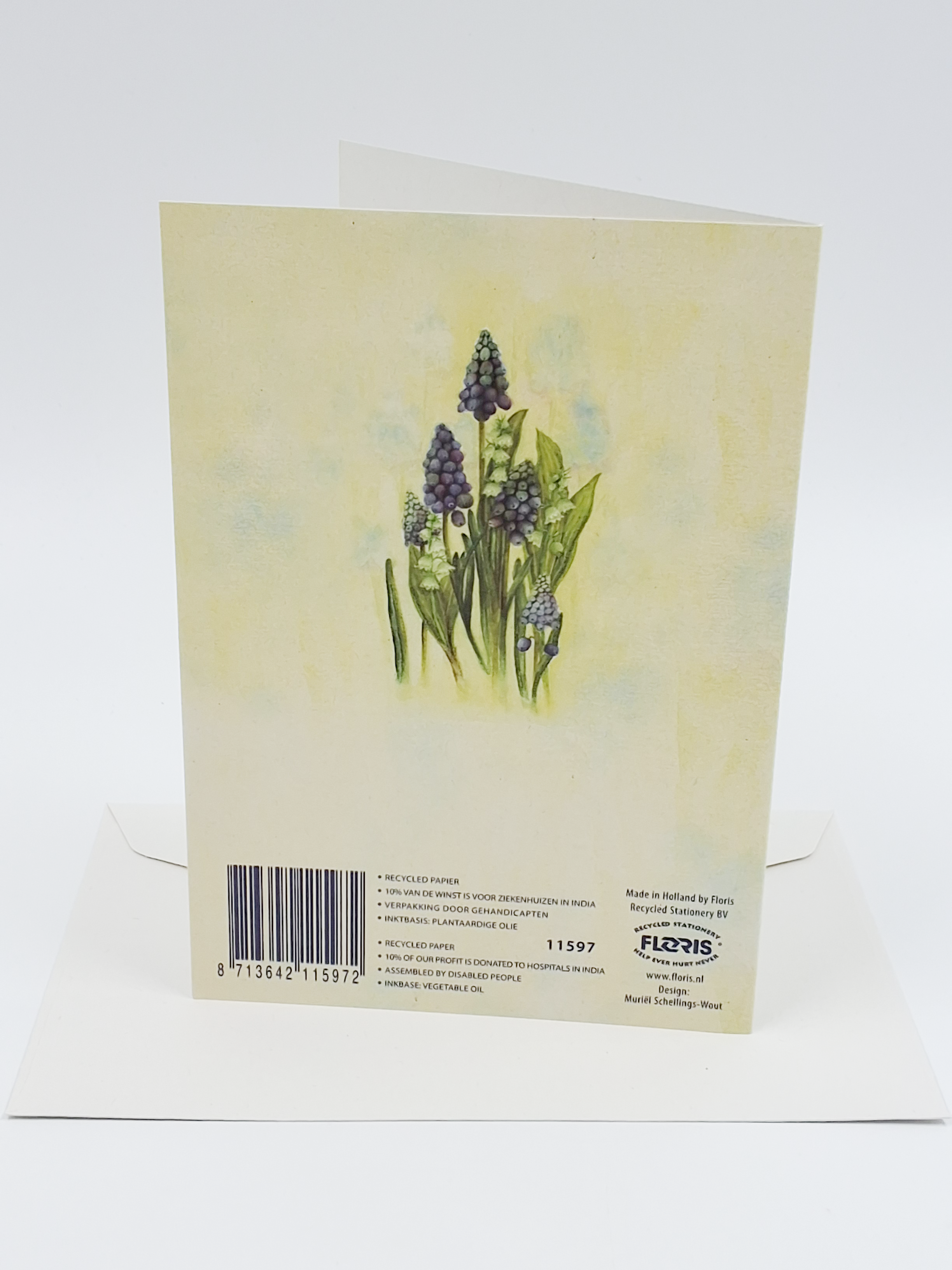 Onze wenskaarten zijn gemaakt van gerecycled papier en bedrukt met inkt op basis van plantaardige olie.