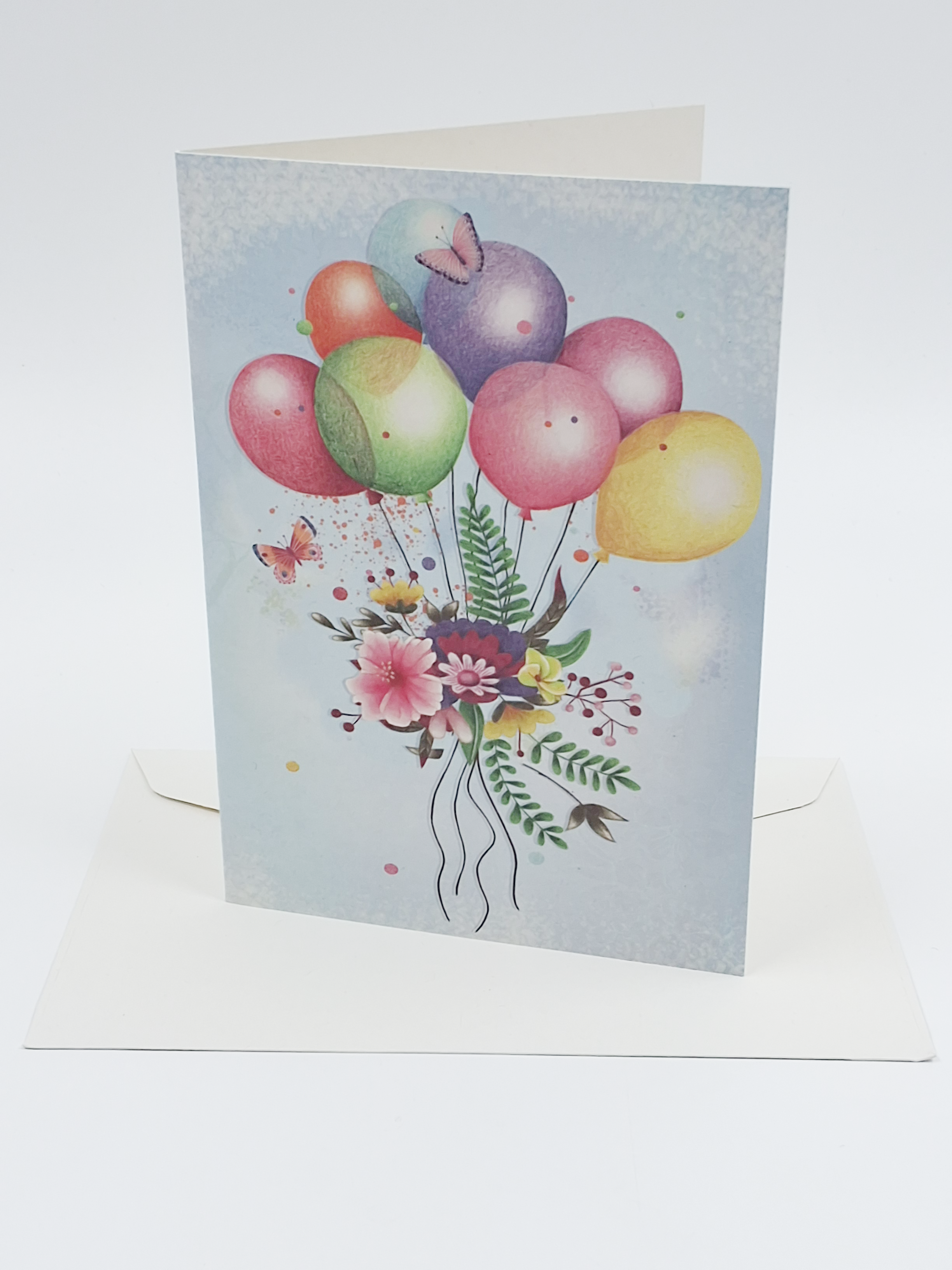 Wenskaart bloemen en ballon