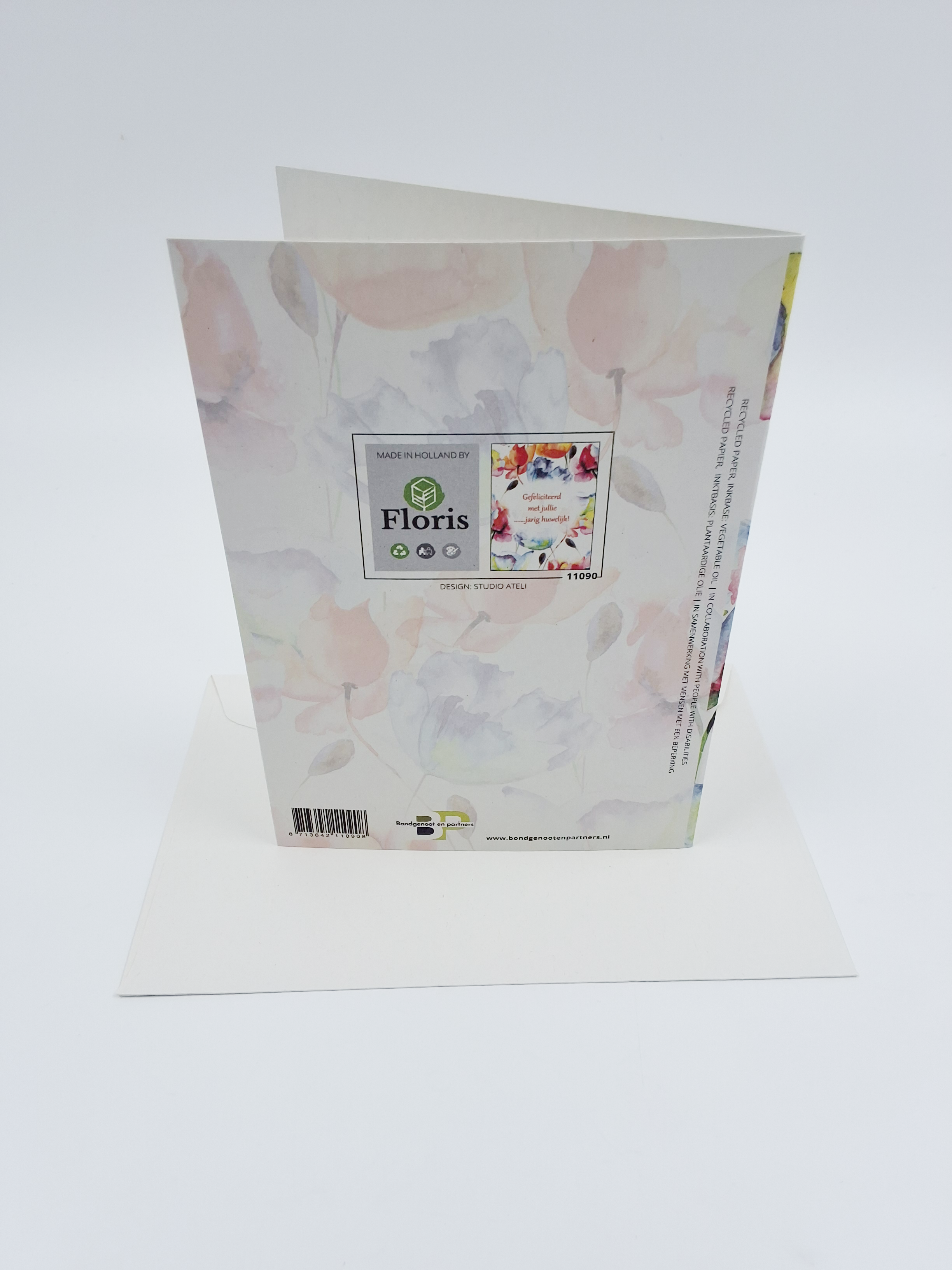 Onze wenskaarten zijn gemaakt van gerecycled papier en bedrukt met inkt op basis van plantaardige olie.