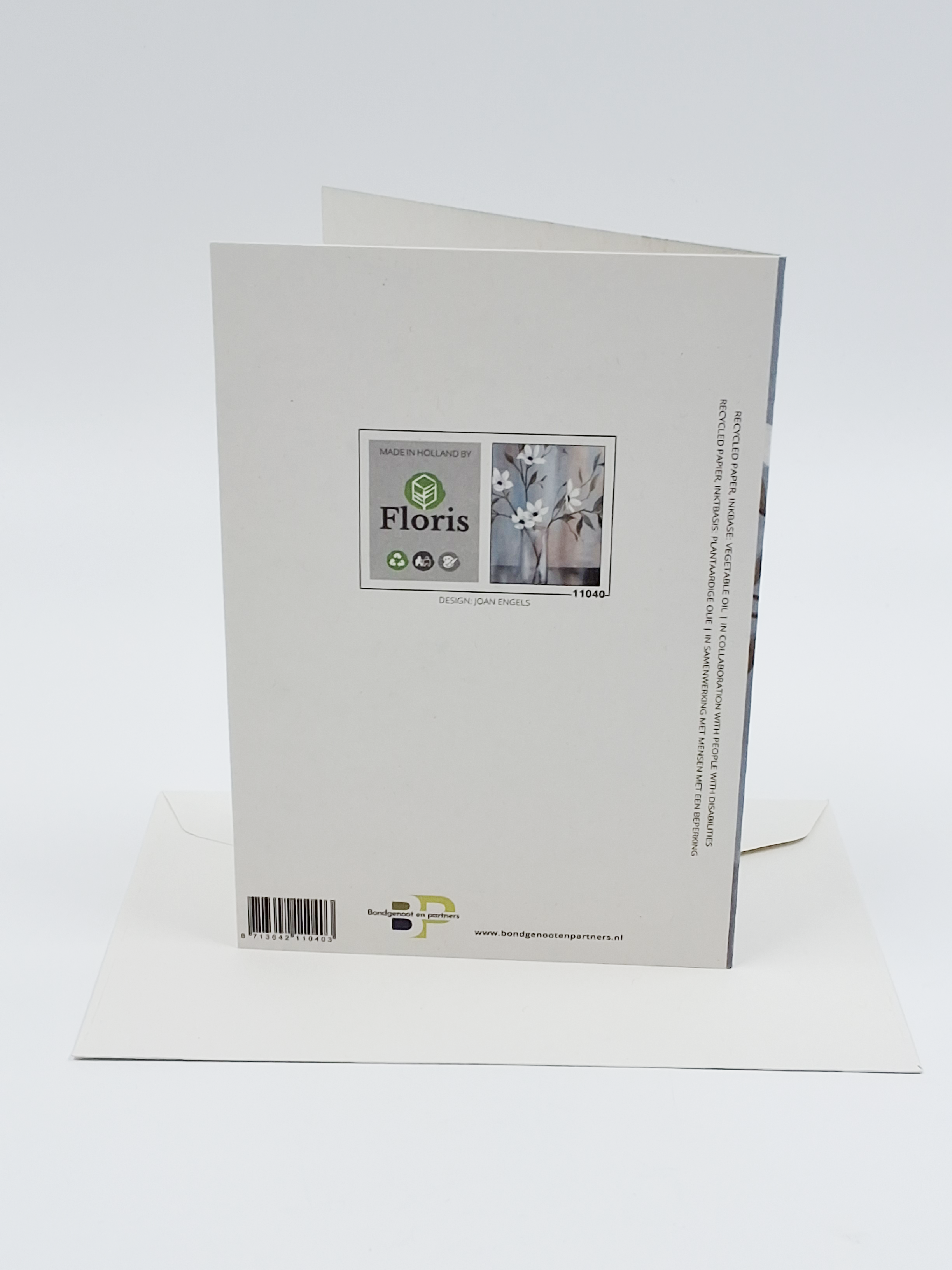 Onze wenskaarten zijn gemaakt van gerecycled papier en bedrukt met inkt op basis van plantaardige olie.
