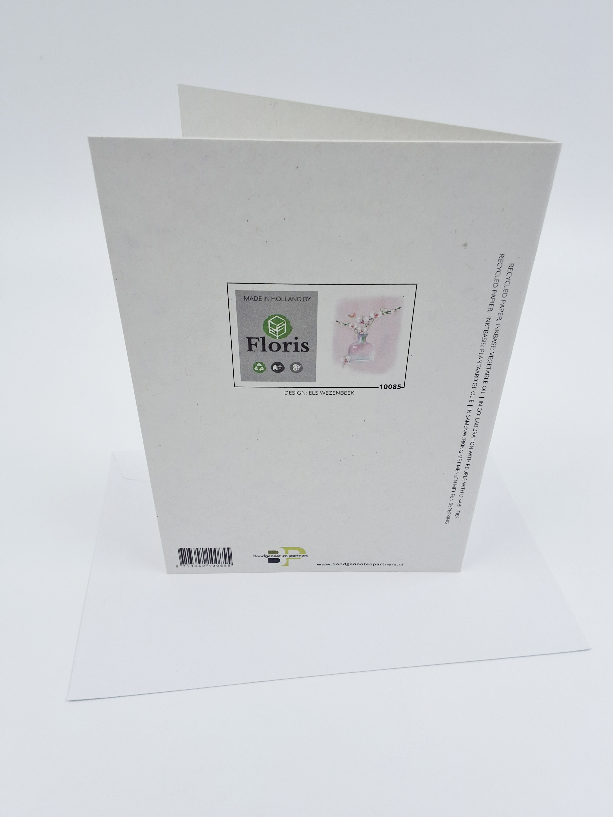 Onze wenskaarten zijn gemaakt van gerecycled papier en bedrukt met inkt op basis van plantaardige olie.