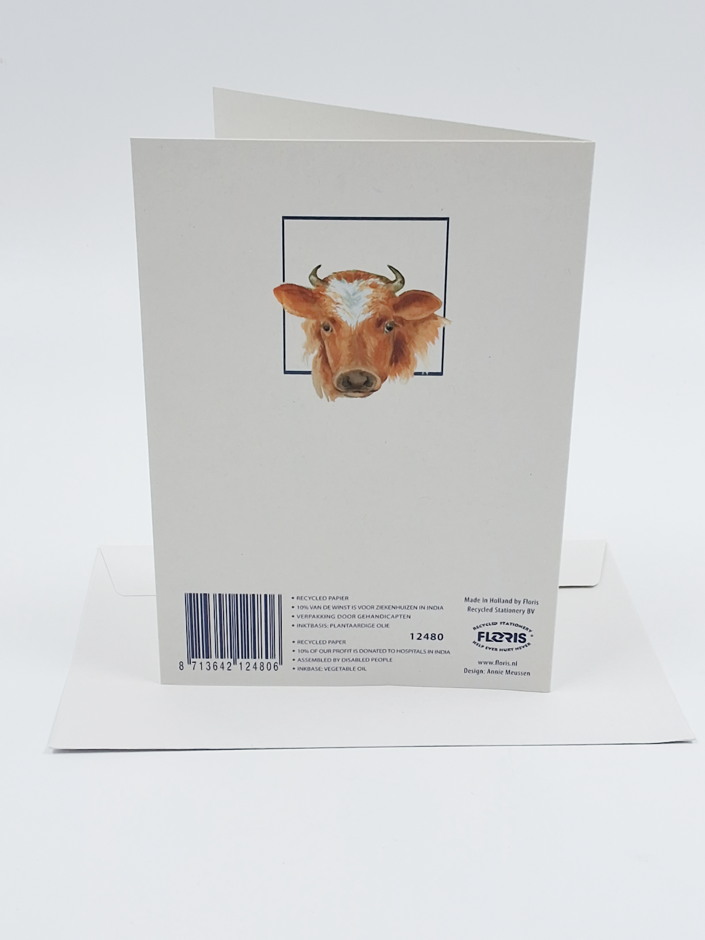 Onze wenskaarten zijn gemaakt van gerecycled papier en bedrukt met inkt op basis van plantaardige olie.