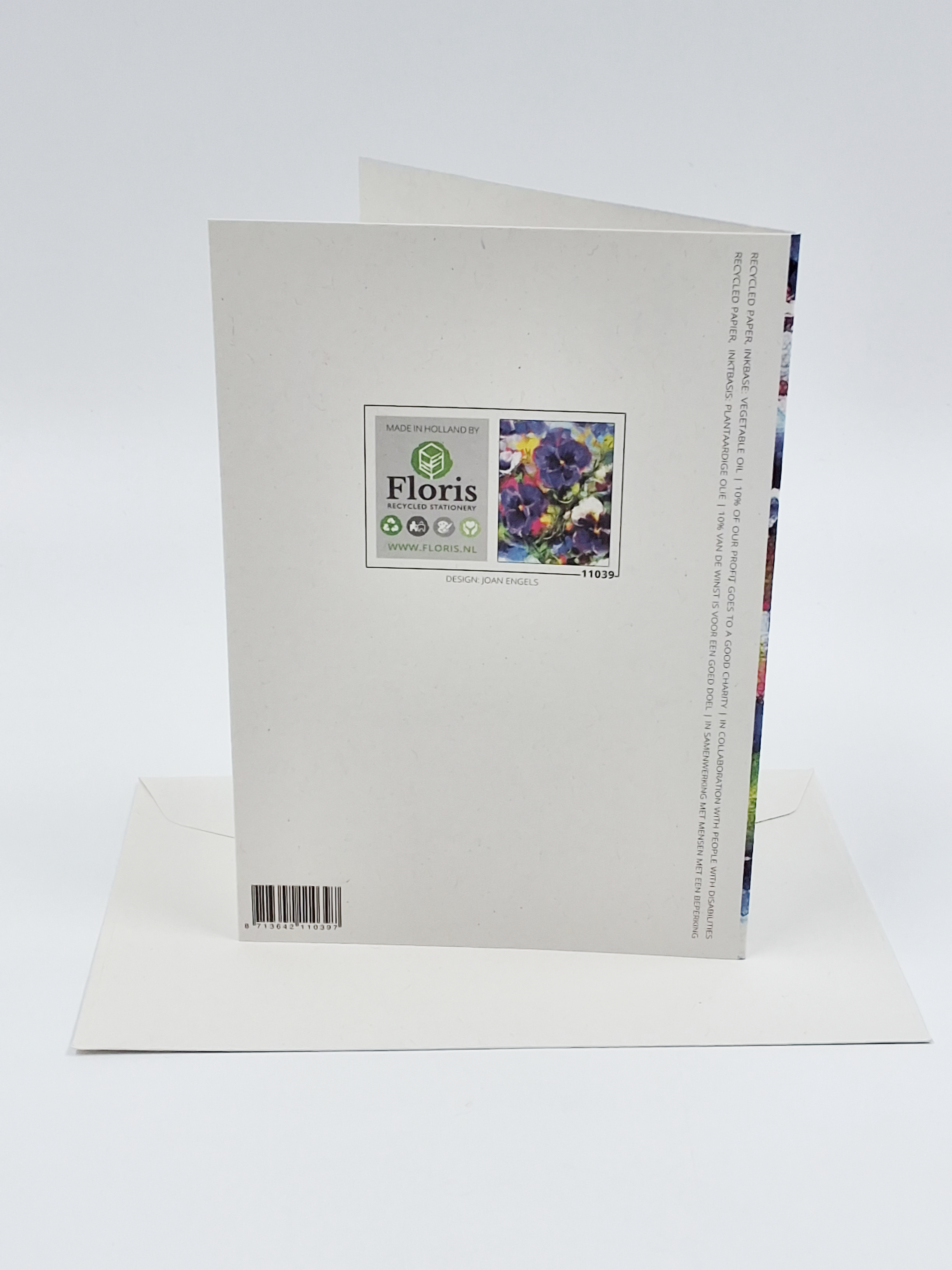 Onze wenskaarten zijn gemaakt van gerecycled papier en bedrukt met inkt op basis van plantaardige olie.