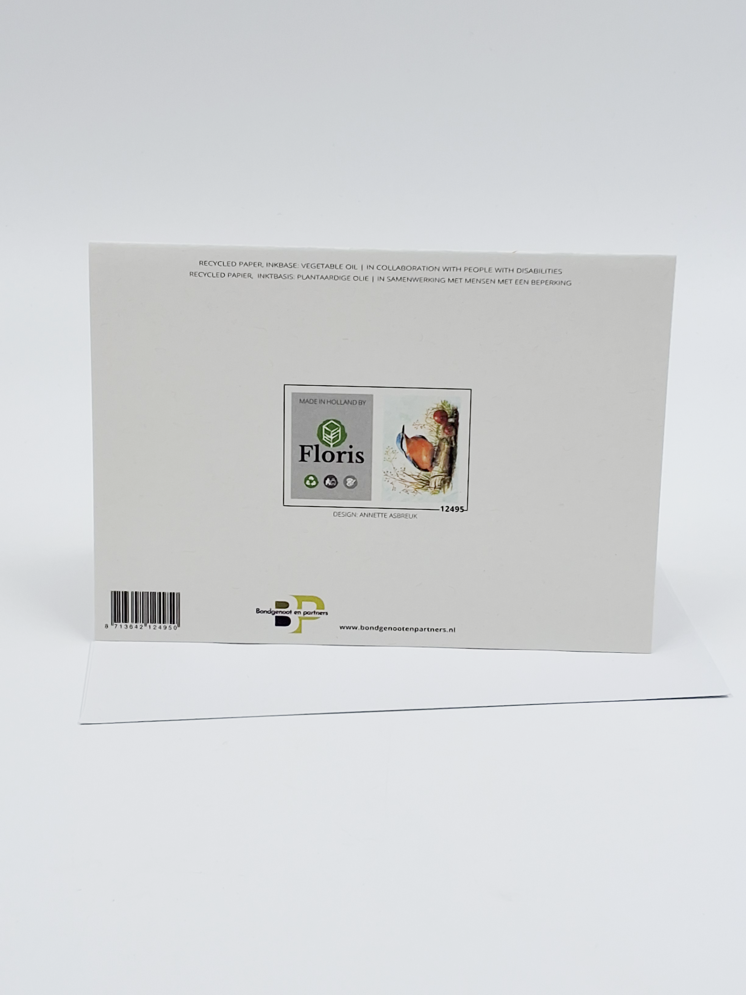 Onze wenskaarten zijn gemaakt van gerecycled papier en bedrukt met inkt op basis van plantaardige olie.