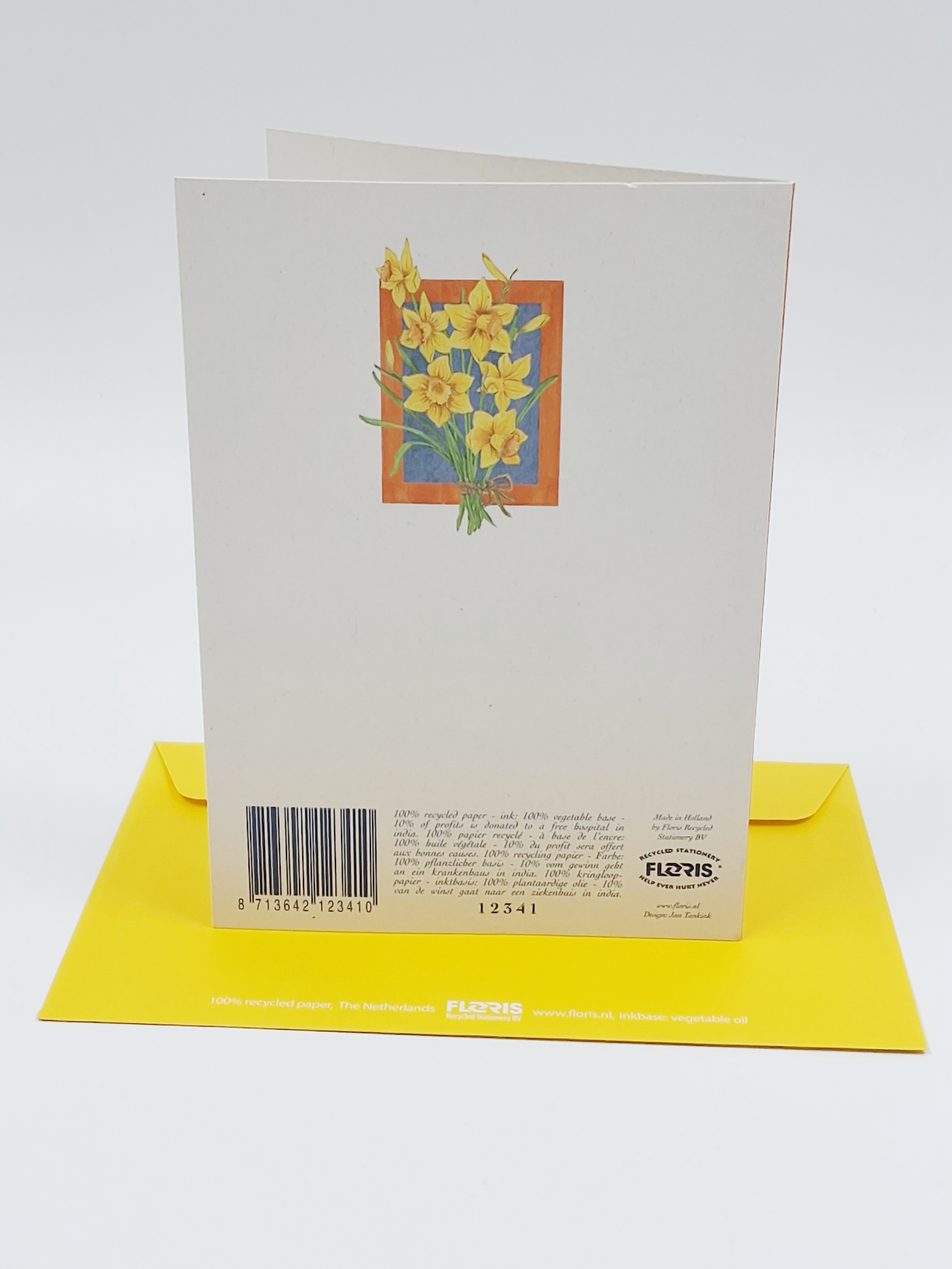 Onze wenskaarten zijn gemaakt van gerecycled papier en bedrukt met inkt op basis van plantaardige olie.