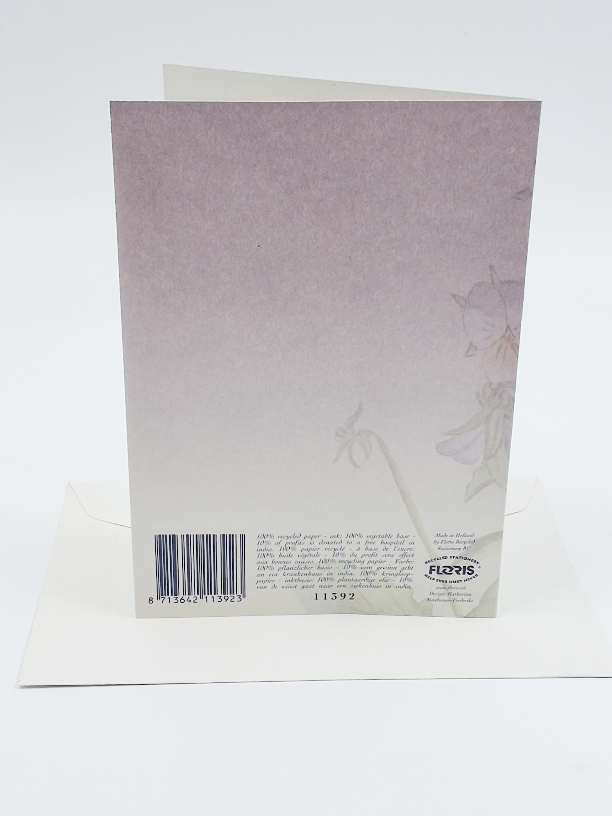 Onze wenskaarten zijn gemaakt van gerecycled papier en bedrukt met inkt op basis van plantaardige olie.