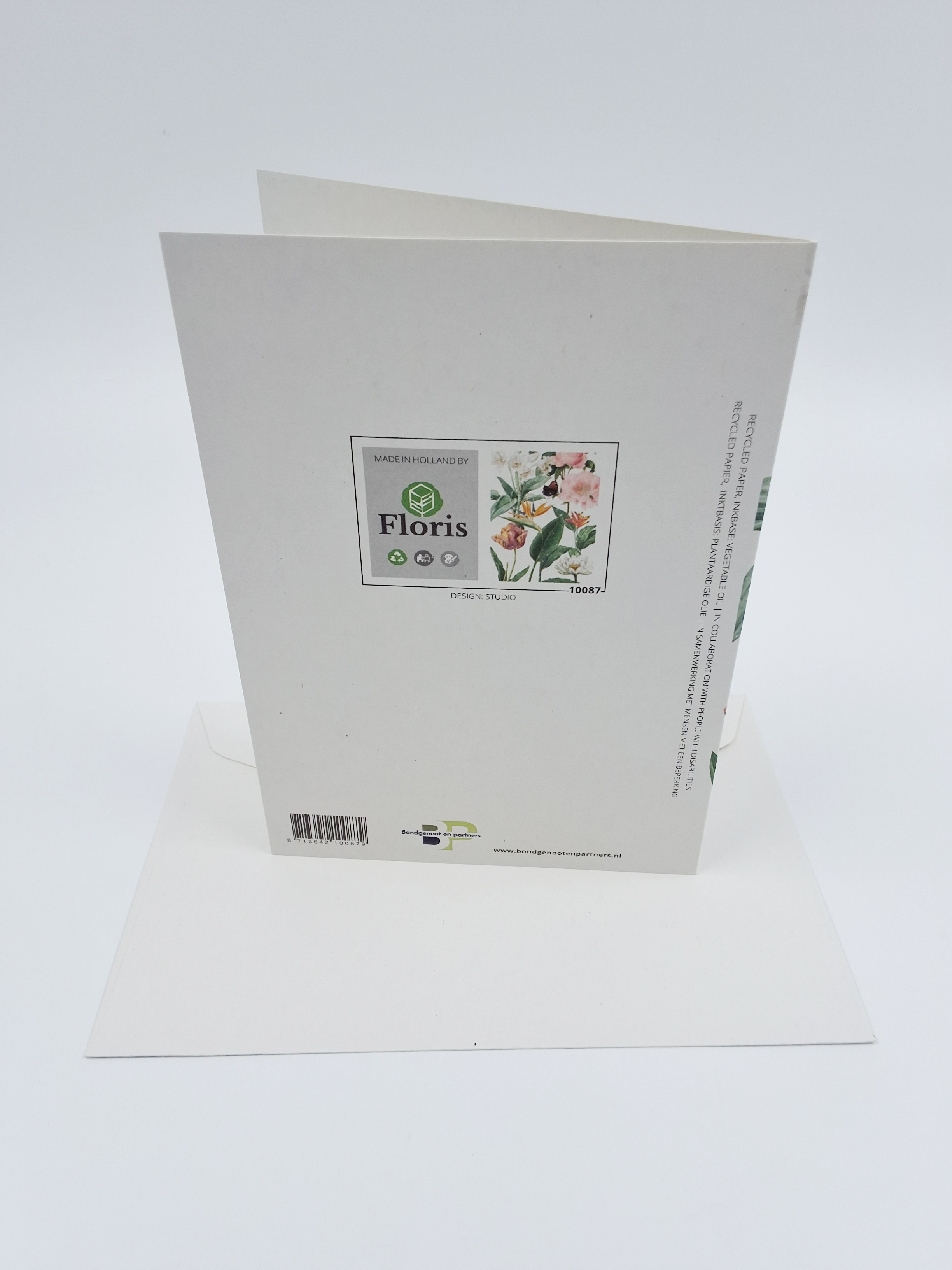 Onze wenskaarten zijn gemaakt van gerecycled papier en bedrukt met inkt op basis van plantaardige olie.