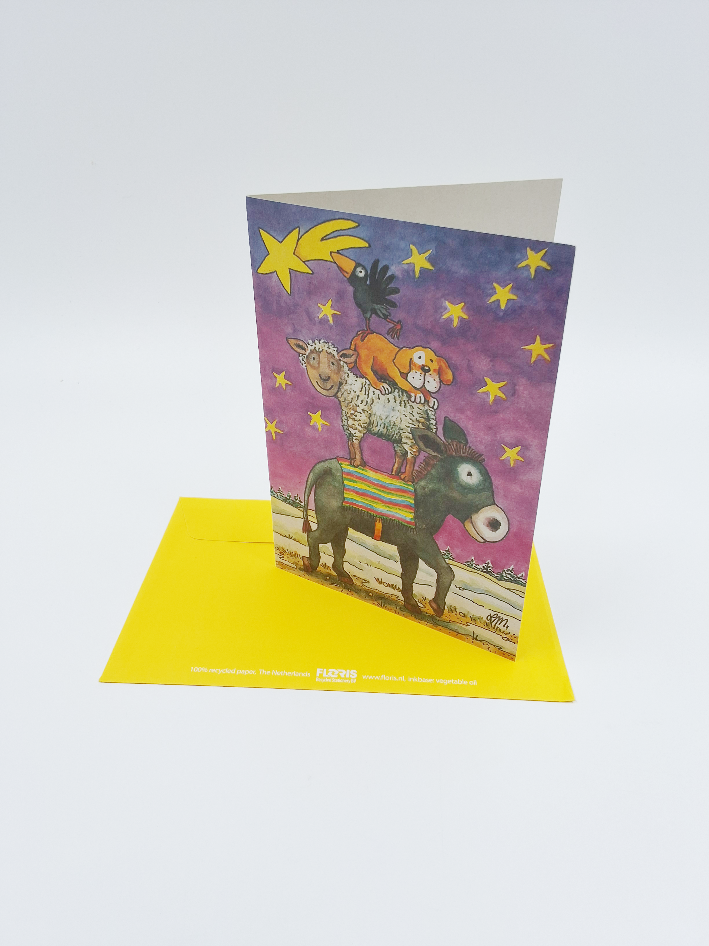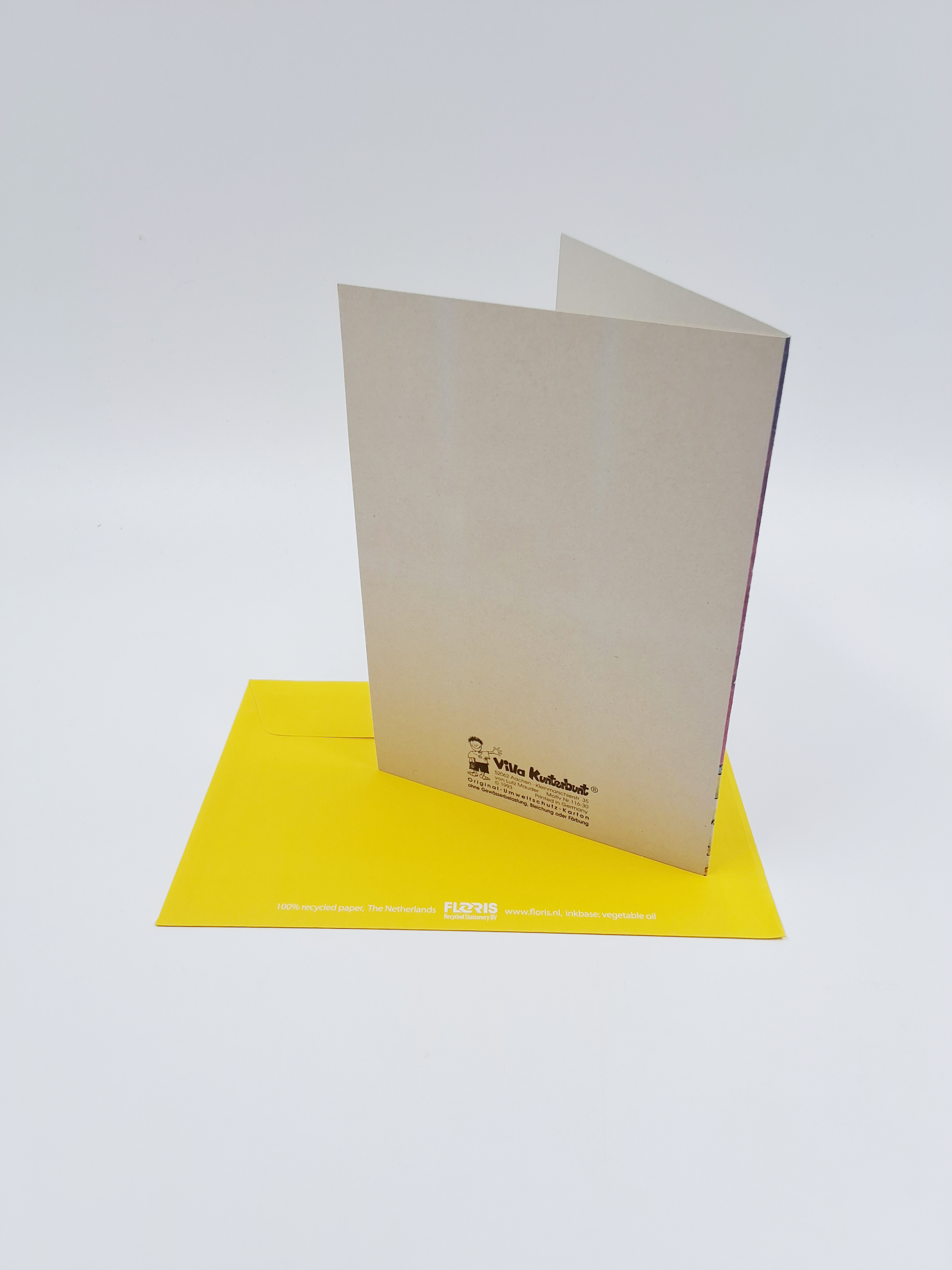 Onze wenskaarten zijn gemaakt van gerecycled papier en bedrukt met inkt op basis van plantaardige olie.