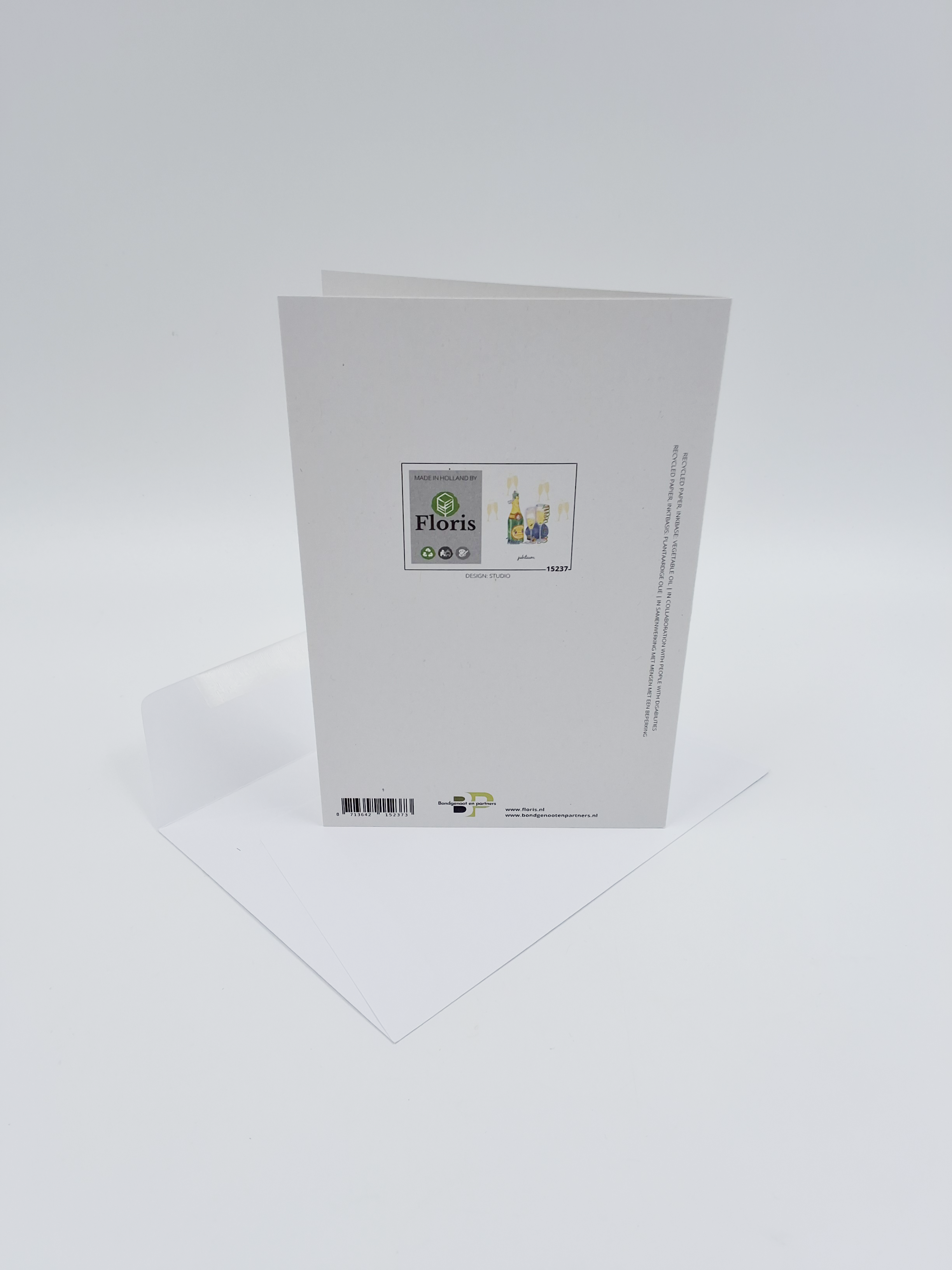 Deze wenskaart is iets groter dan een standaard wenskaart en heeft geen plastiek verpakking. Elke kaart komt met een passende envelop.