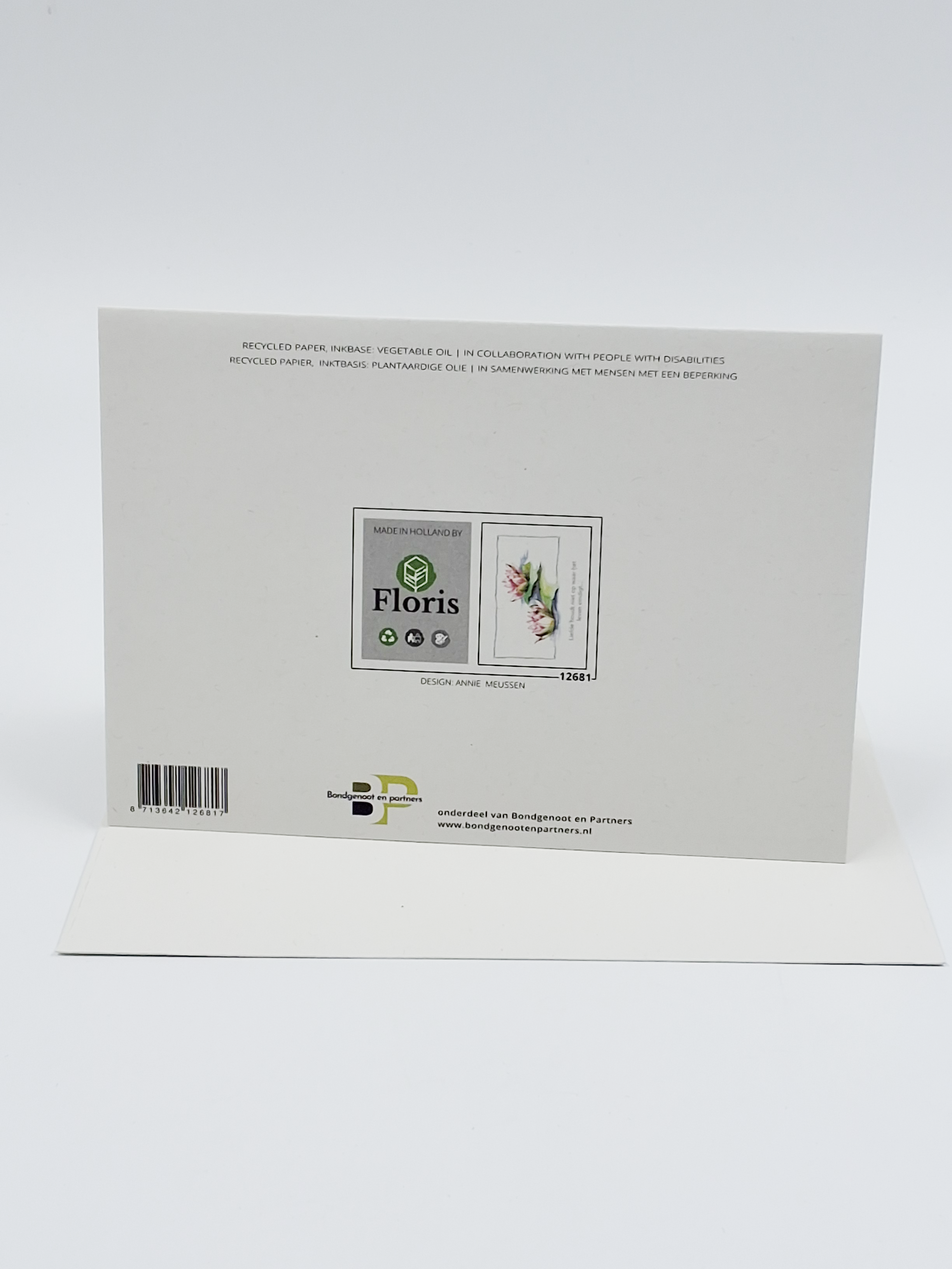 Onze wenskaarten zijn gemaakt van gerecycled papier en bedrukt met inkt op basis van plantaardige olie.