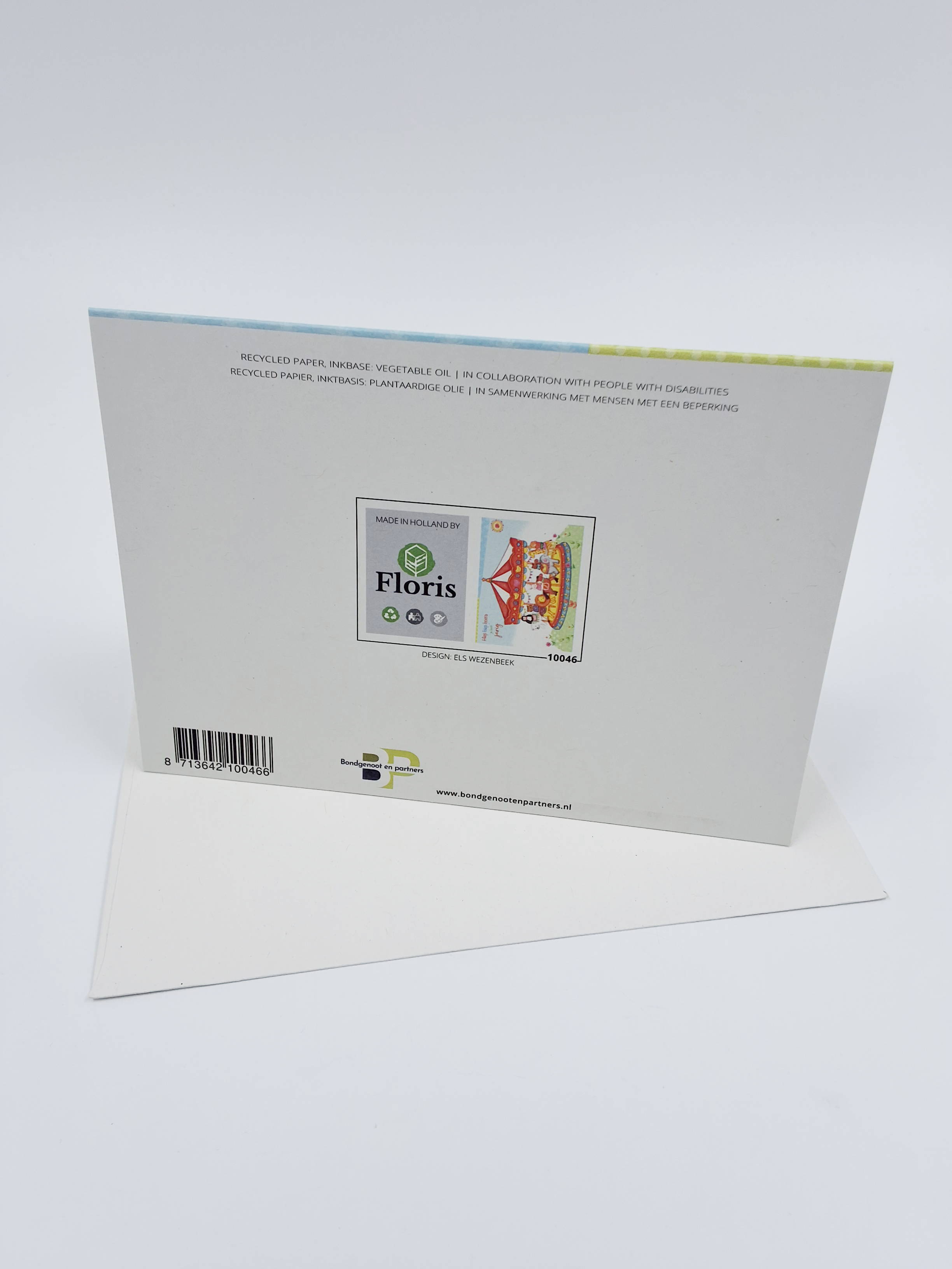 Onze wenskaarten zijn gemaakt van gerecycled papier en bedrukt met inkt op basis van plantaardige olie.