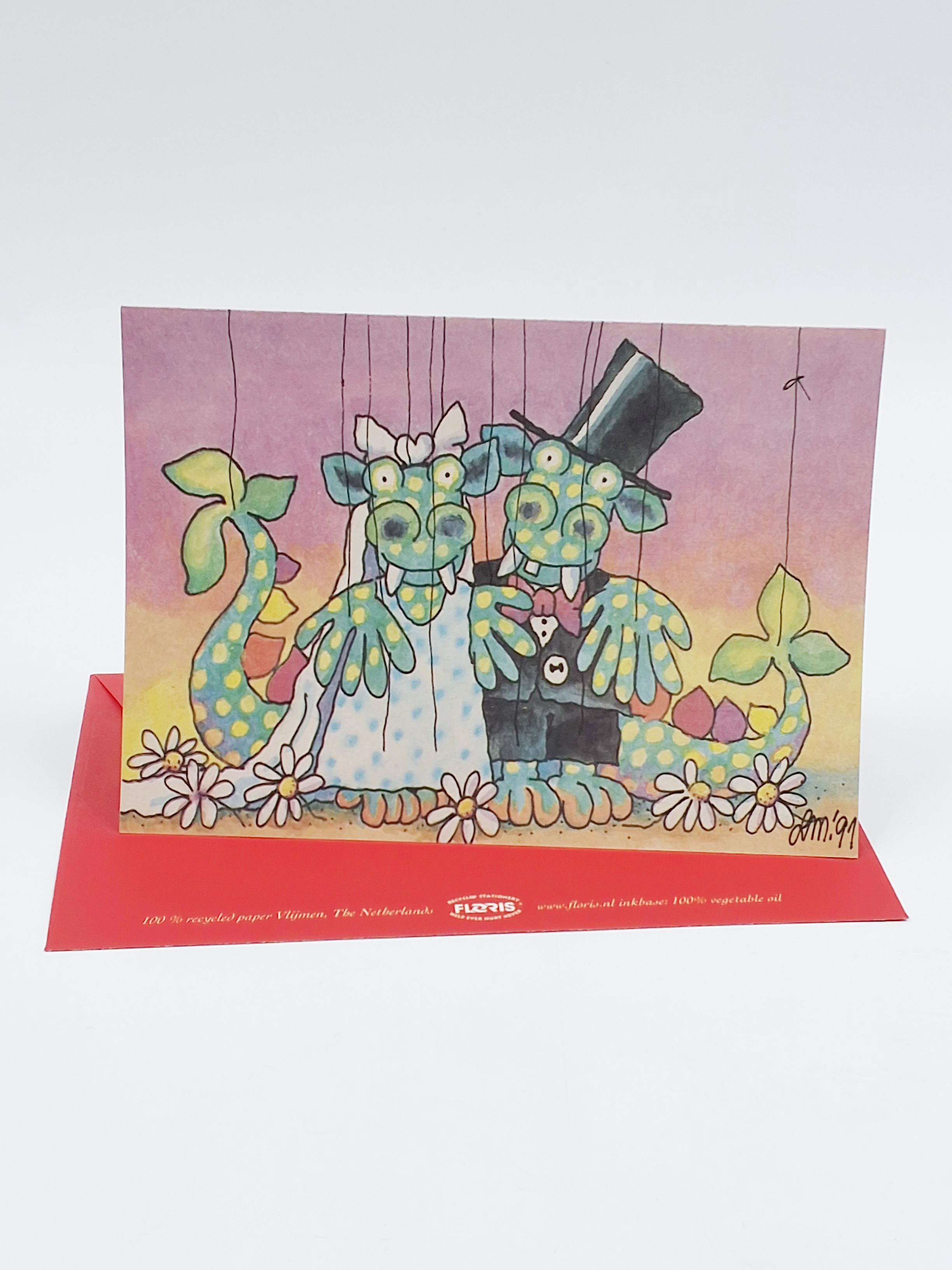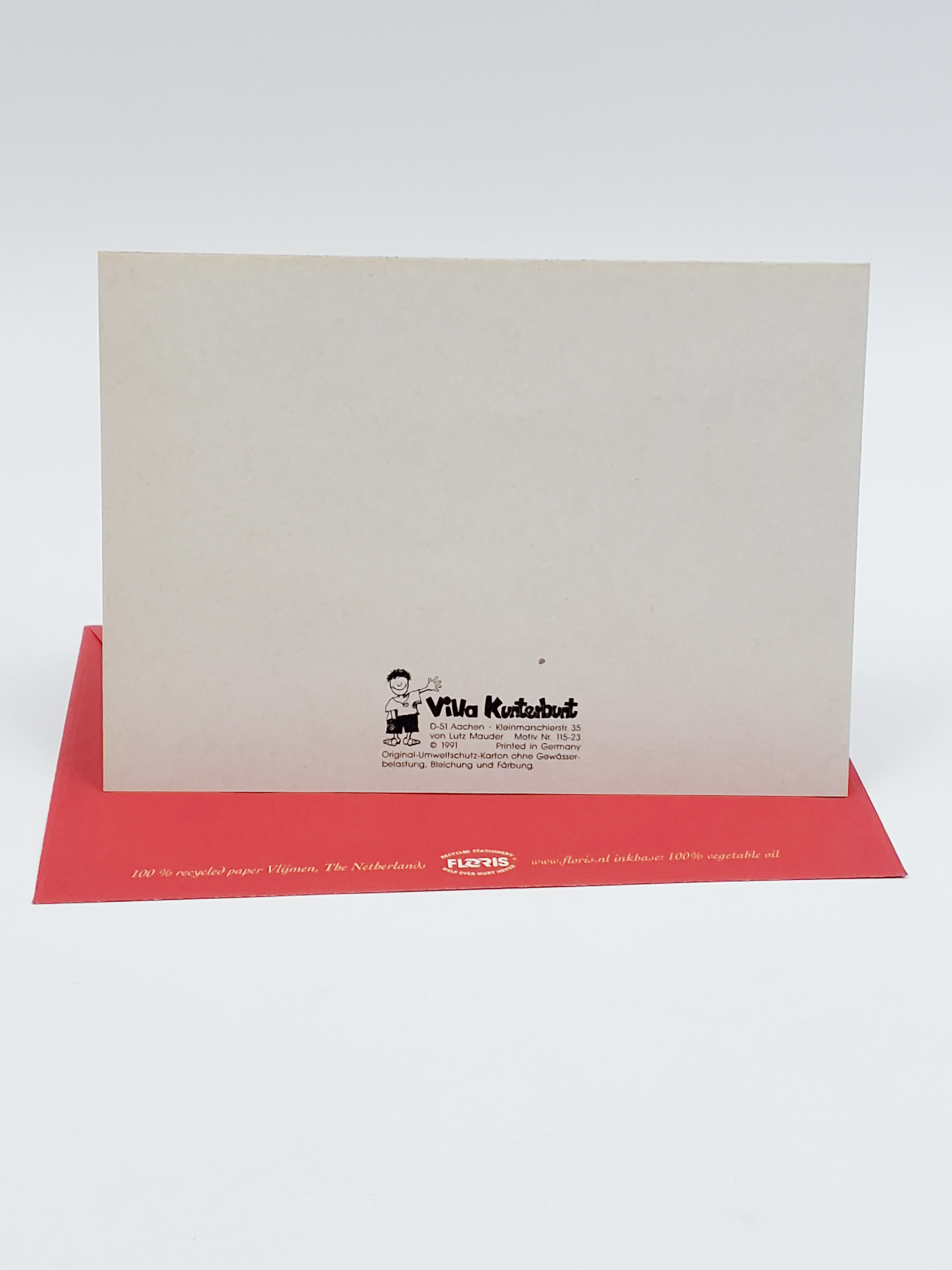 Onze wenskaarten zijn gemaakt van gerecycled papier en bedrukt met inkt op basis van plantaardige olie.