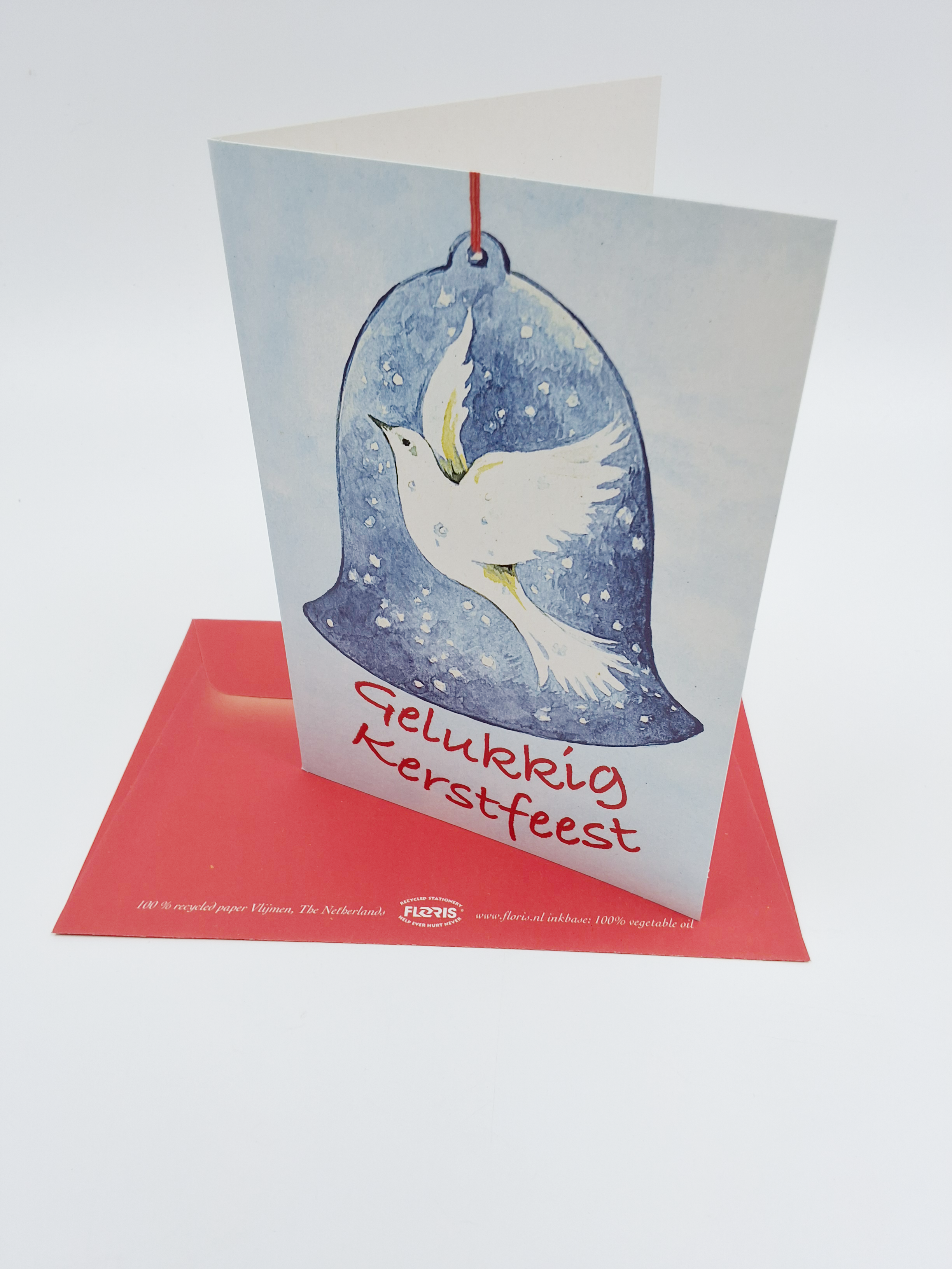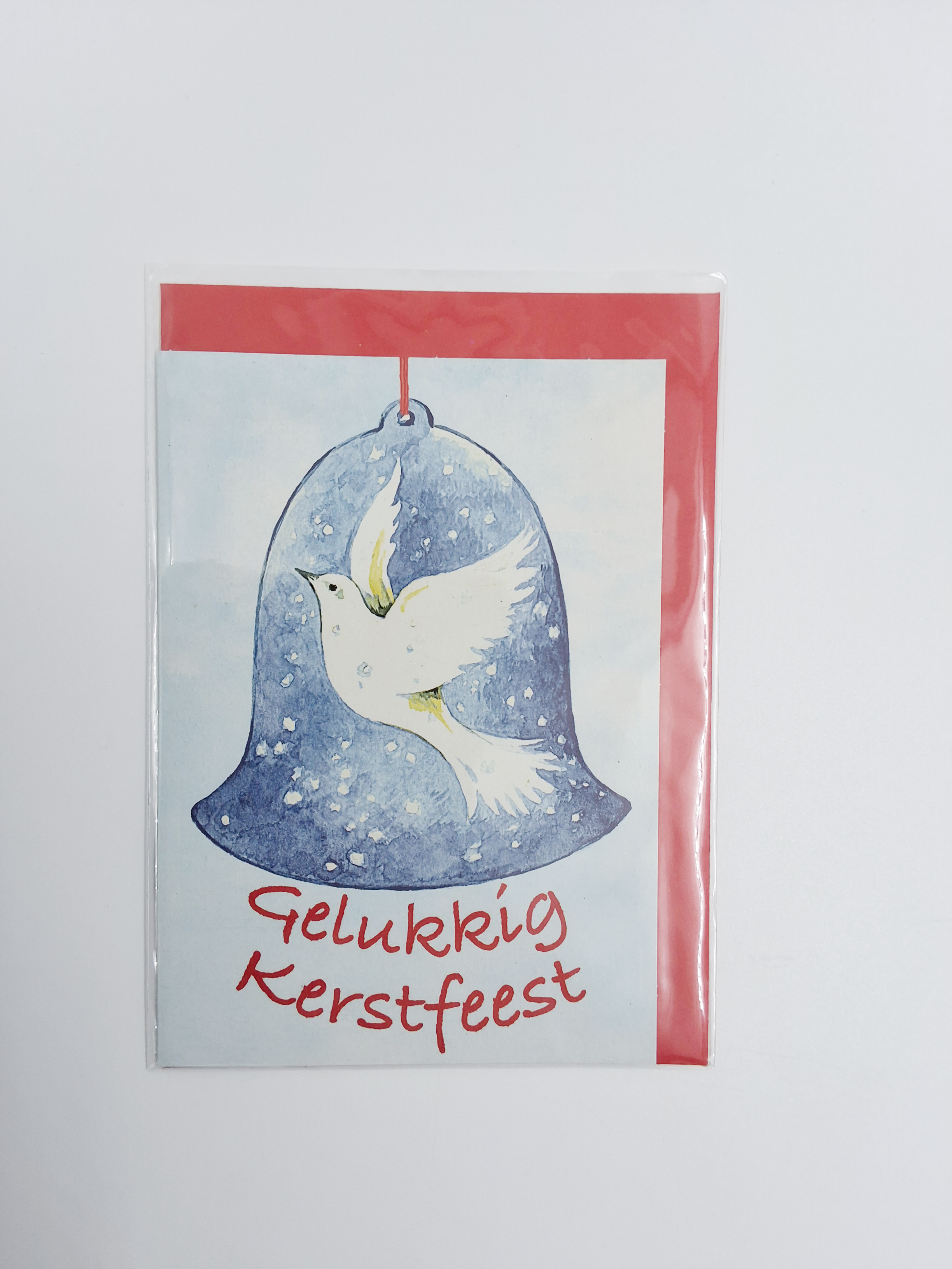 Wenskaart duif in kerstklok "gelukkige kerst"