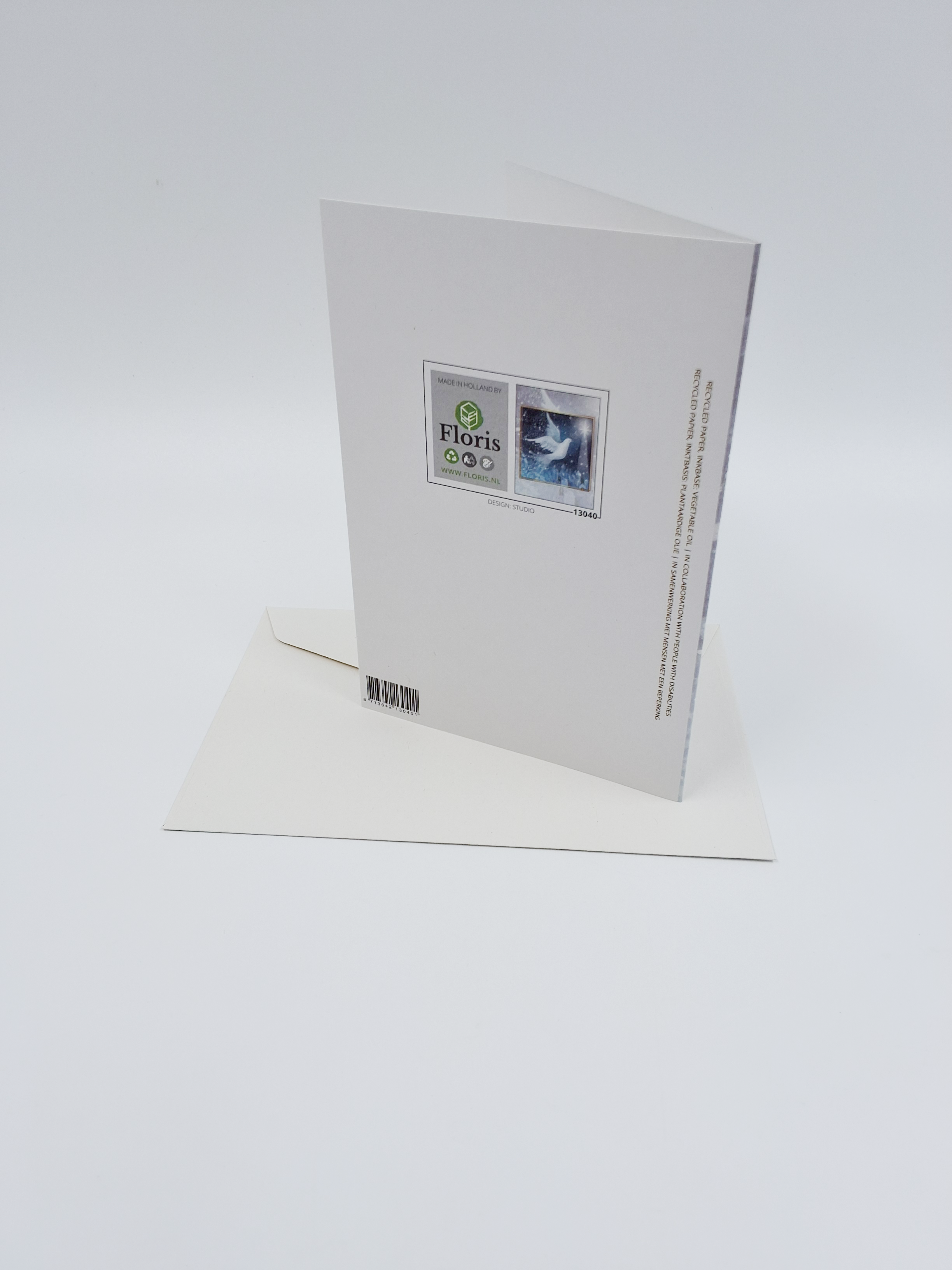 Onze kerstkaarten zijn gemaakt van gerecycled papier en bedrukt met inkt op basis van plantaardige olie.