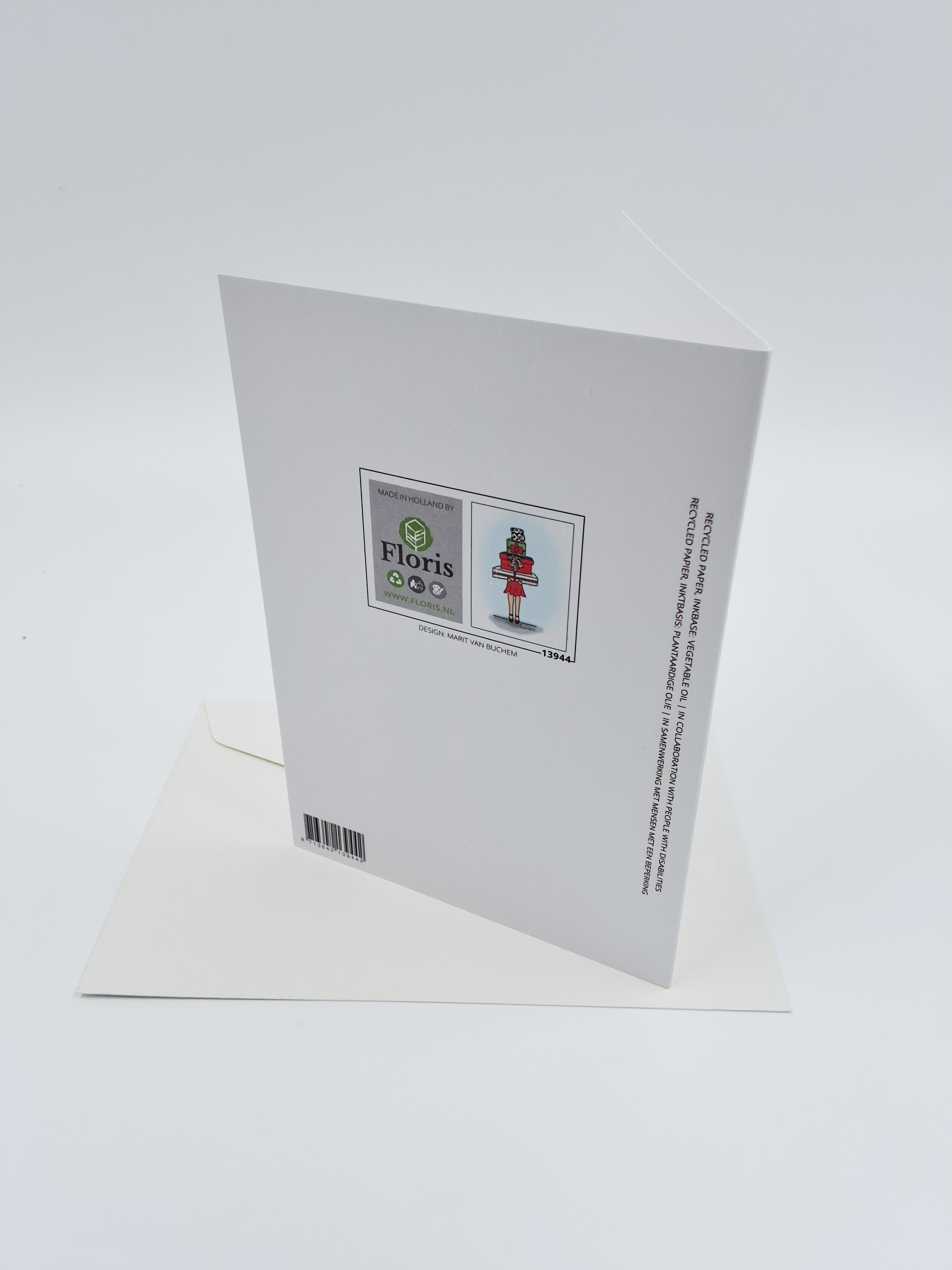 Onze kerstkaarten zijn gemaakt van gerecycled papier en bedrukt met inkt op basis van plantaardige olie.