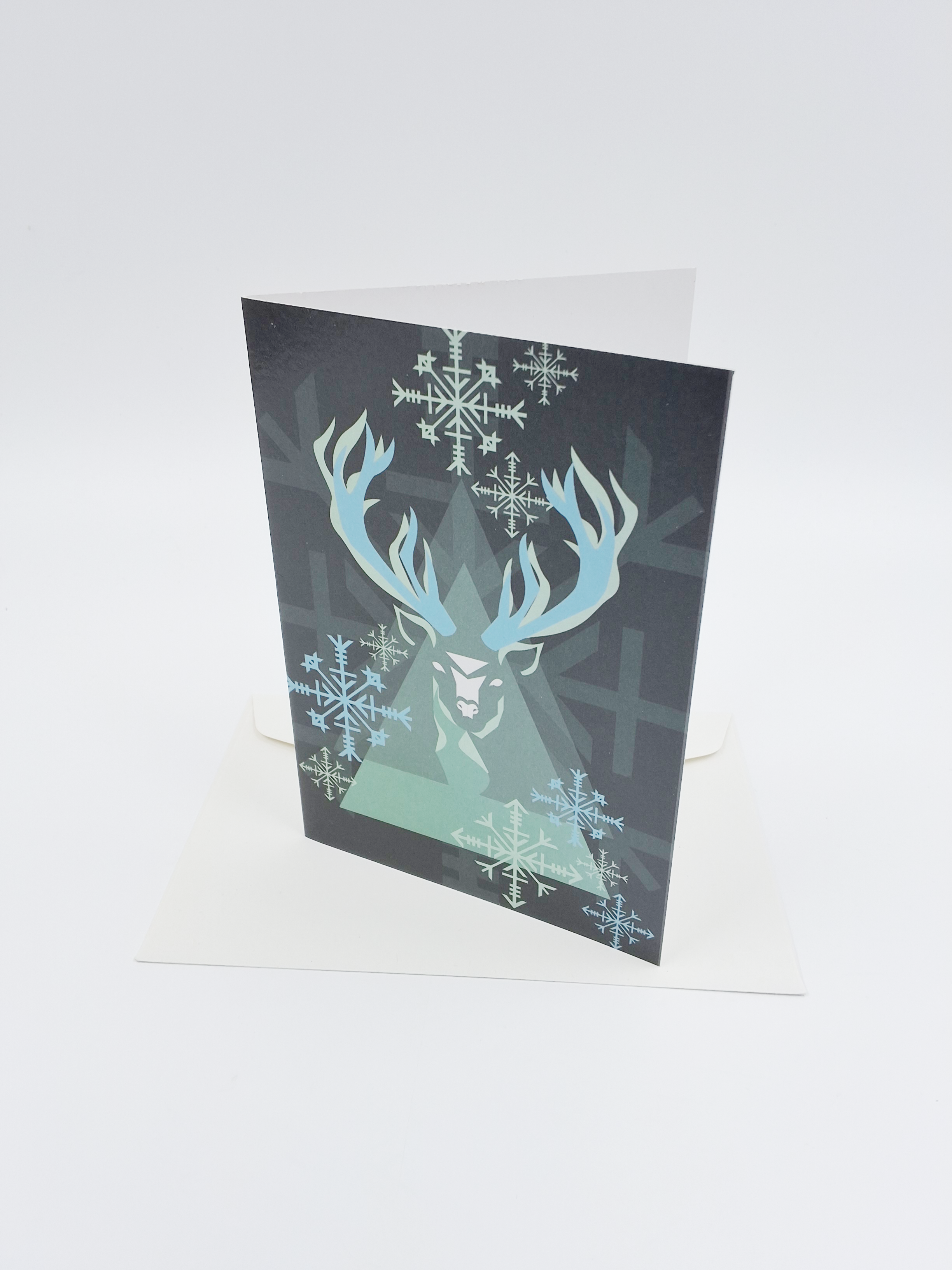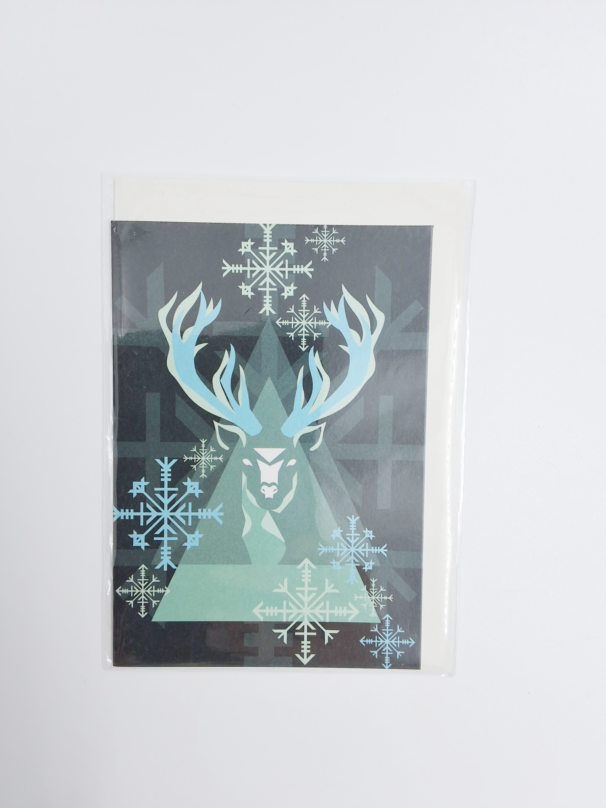 Wenskaart eco-lam. rendier groen zwart