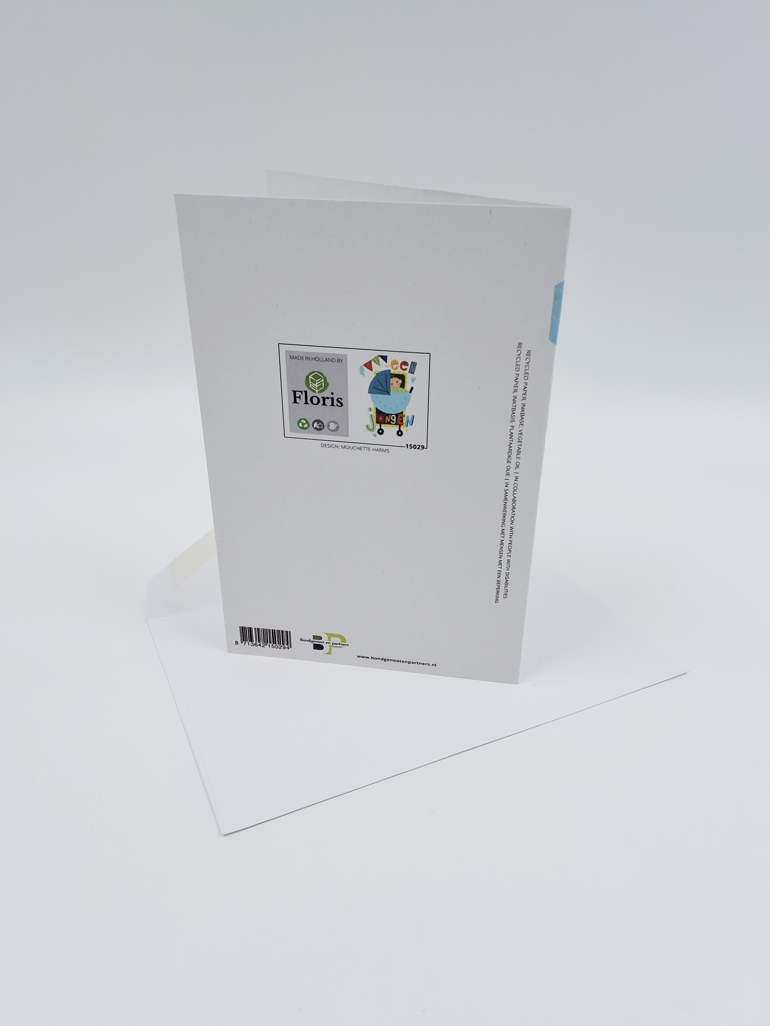 Deze wenskaart is iets groter dan een standaard wenskaart en heeft geen plastiek verpakking. Elke kaart komt met een passende envelop.