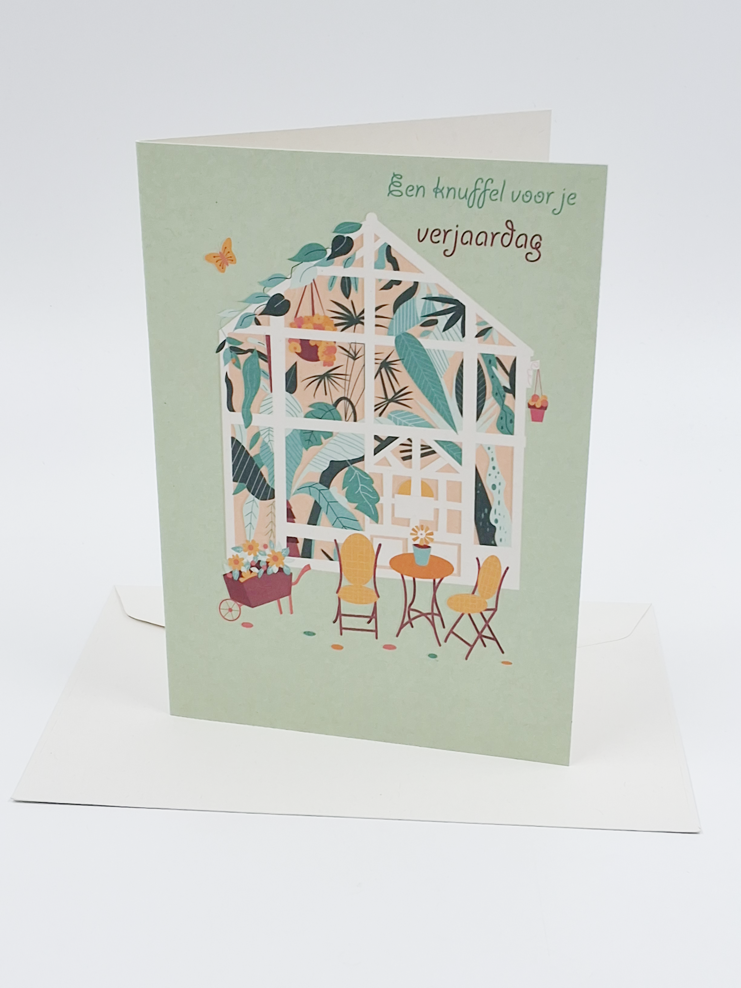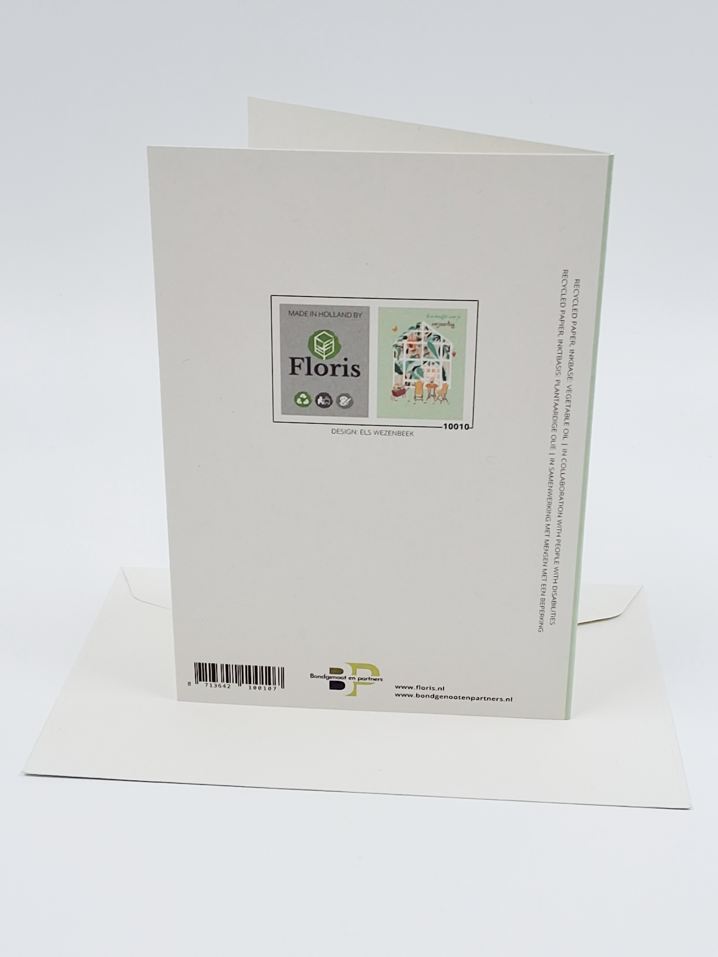 Onze wenskaarten zijn gemaakt van gerecycled papier en bedrukt met inkt op basis van plantaardige olie.