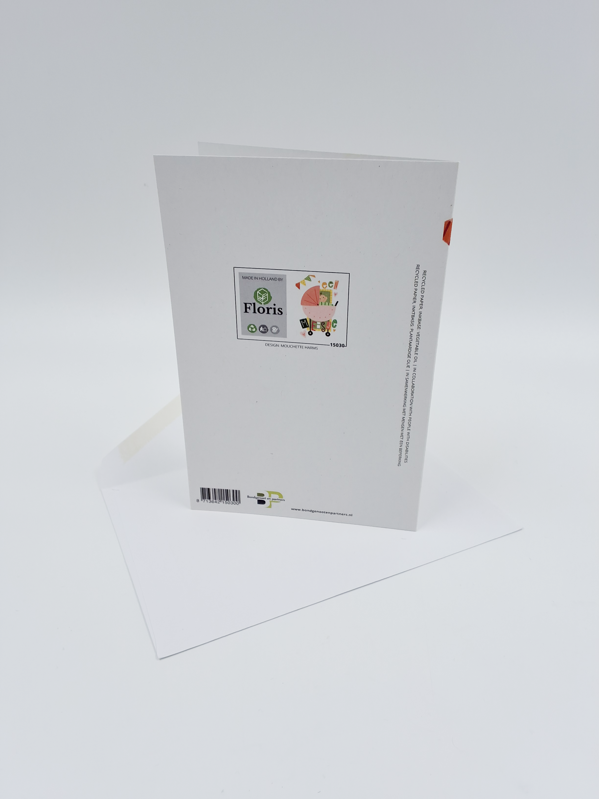 Onze wenskaarten zijn gemaakt van gerecycled papier en bedrukt met inkt op basis van plantaardige olie.