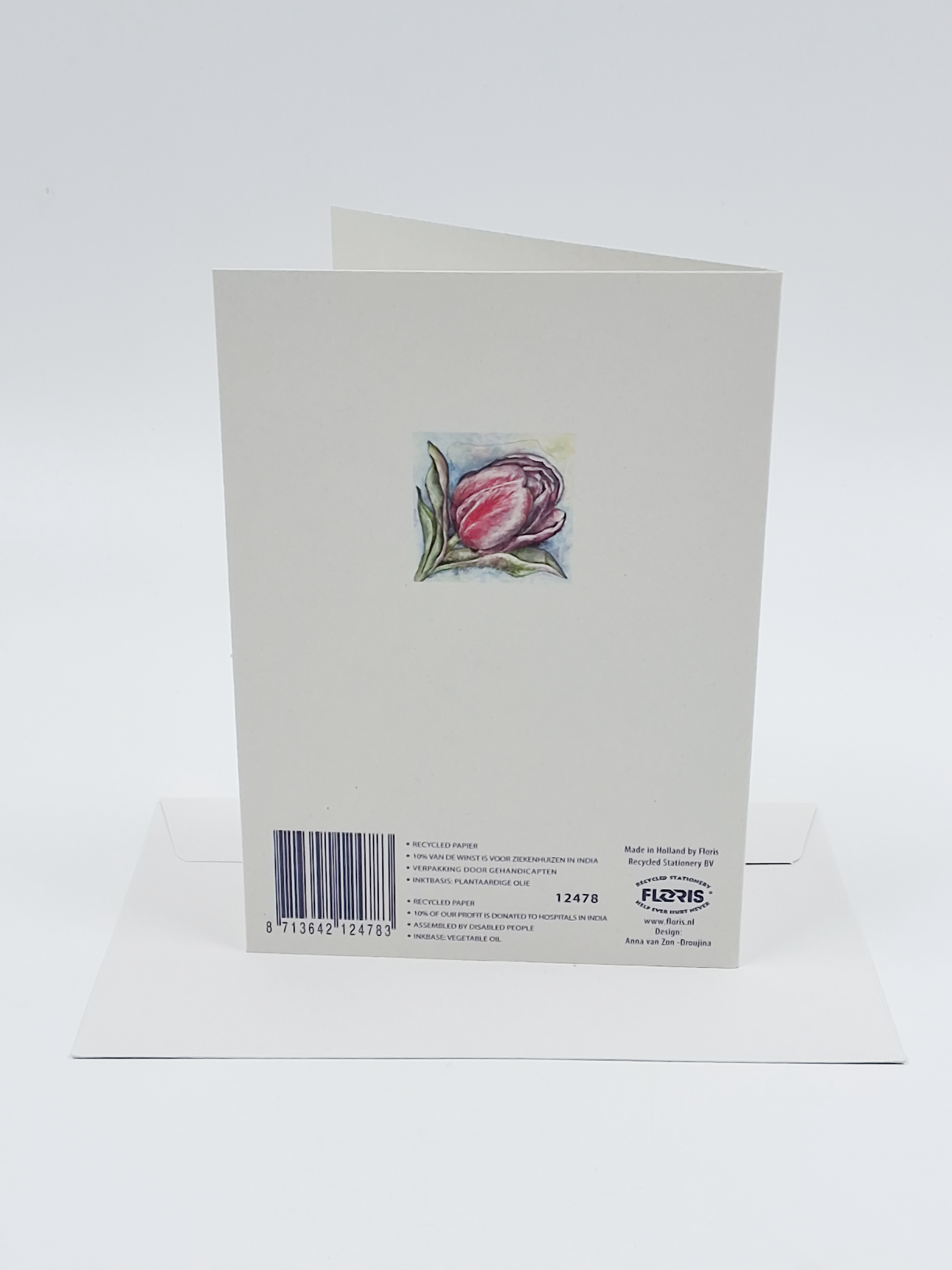 Onze wenskaarten zijn gemaakt van gerecycled papier en bedrukt met inkt op basis van plantaardige olie.