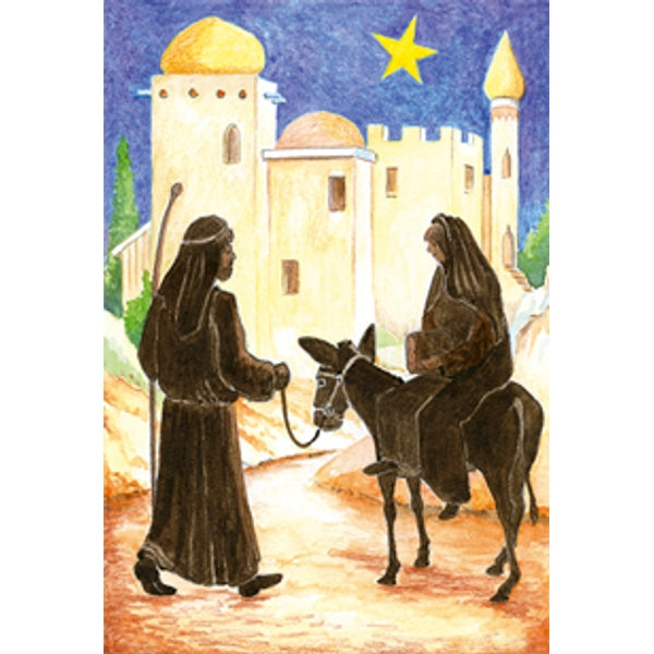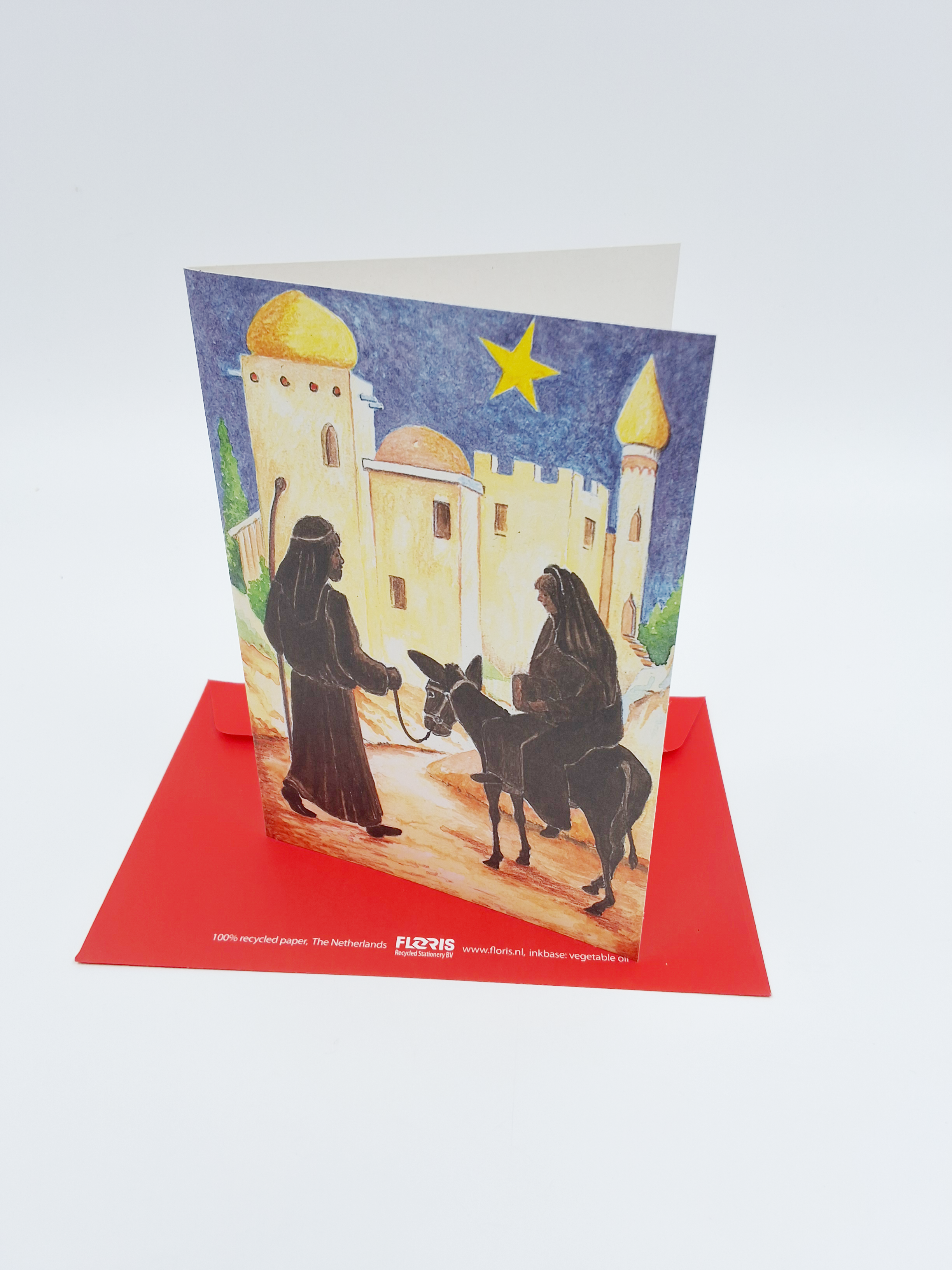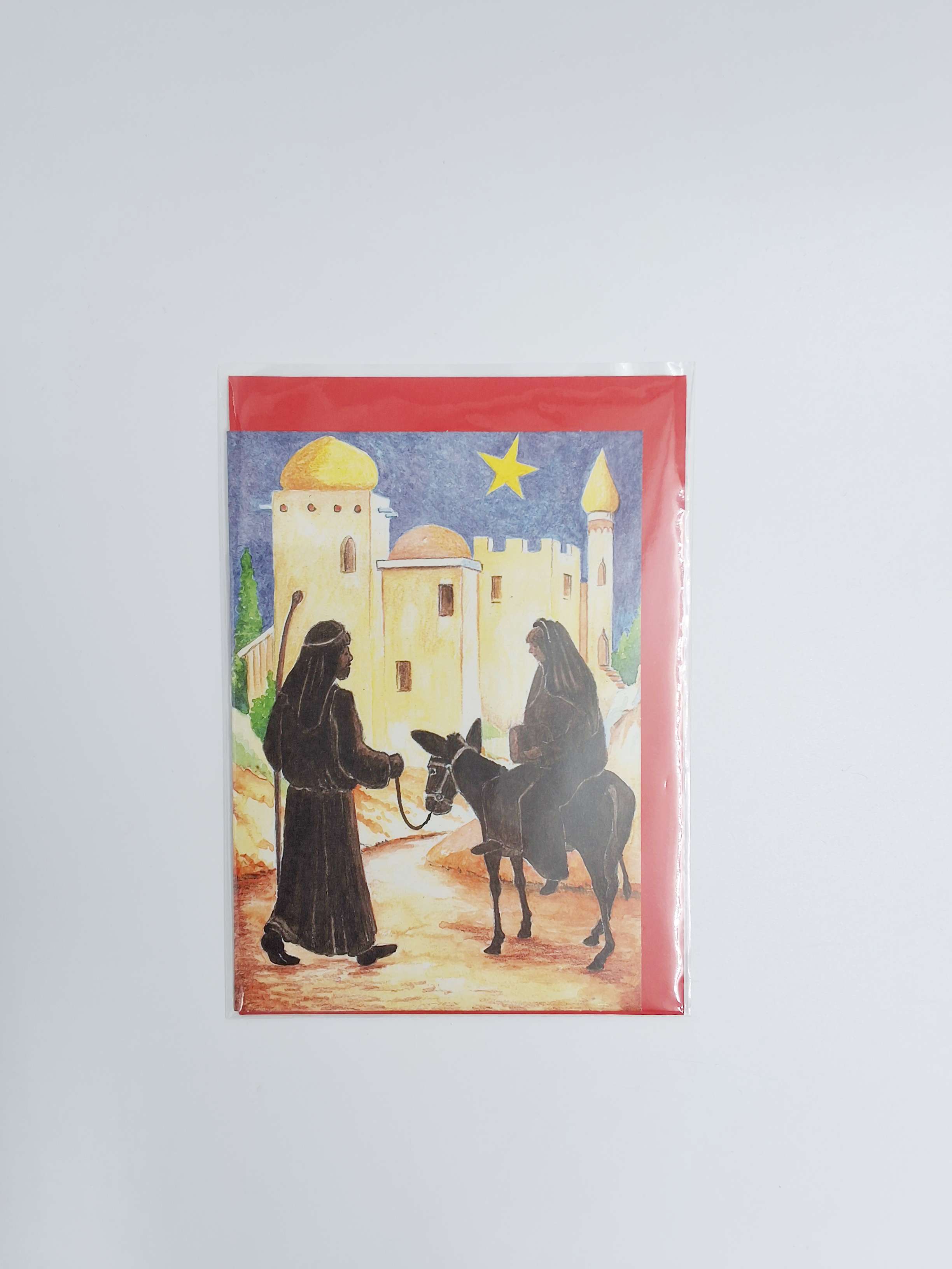 Wenskaart ezel, Maria, Jozef