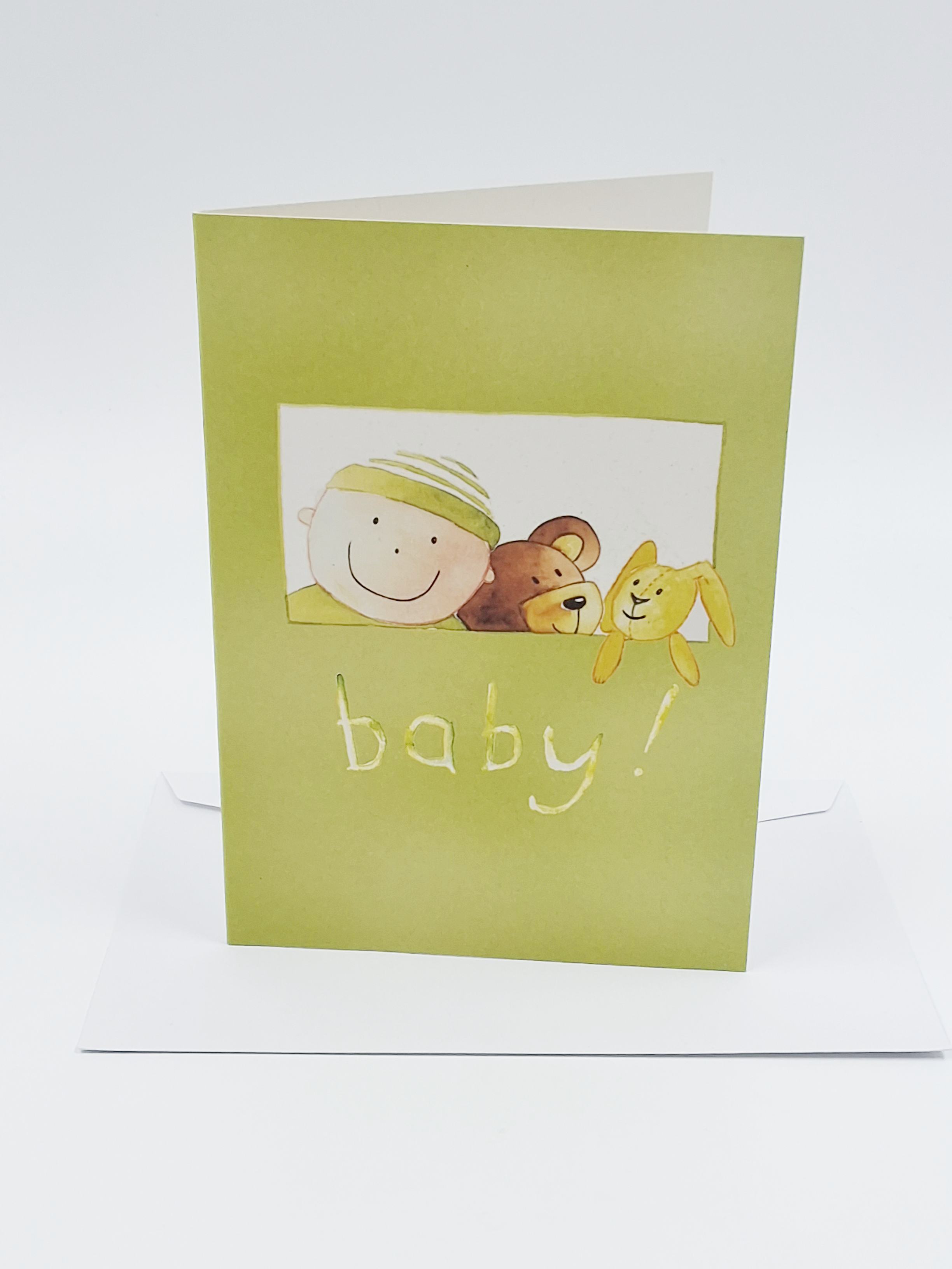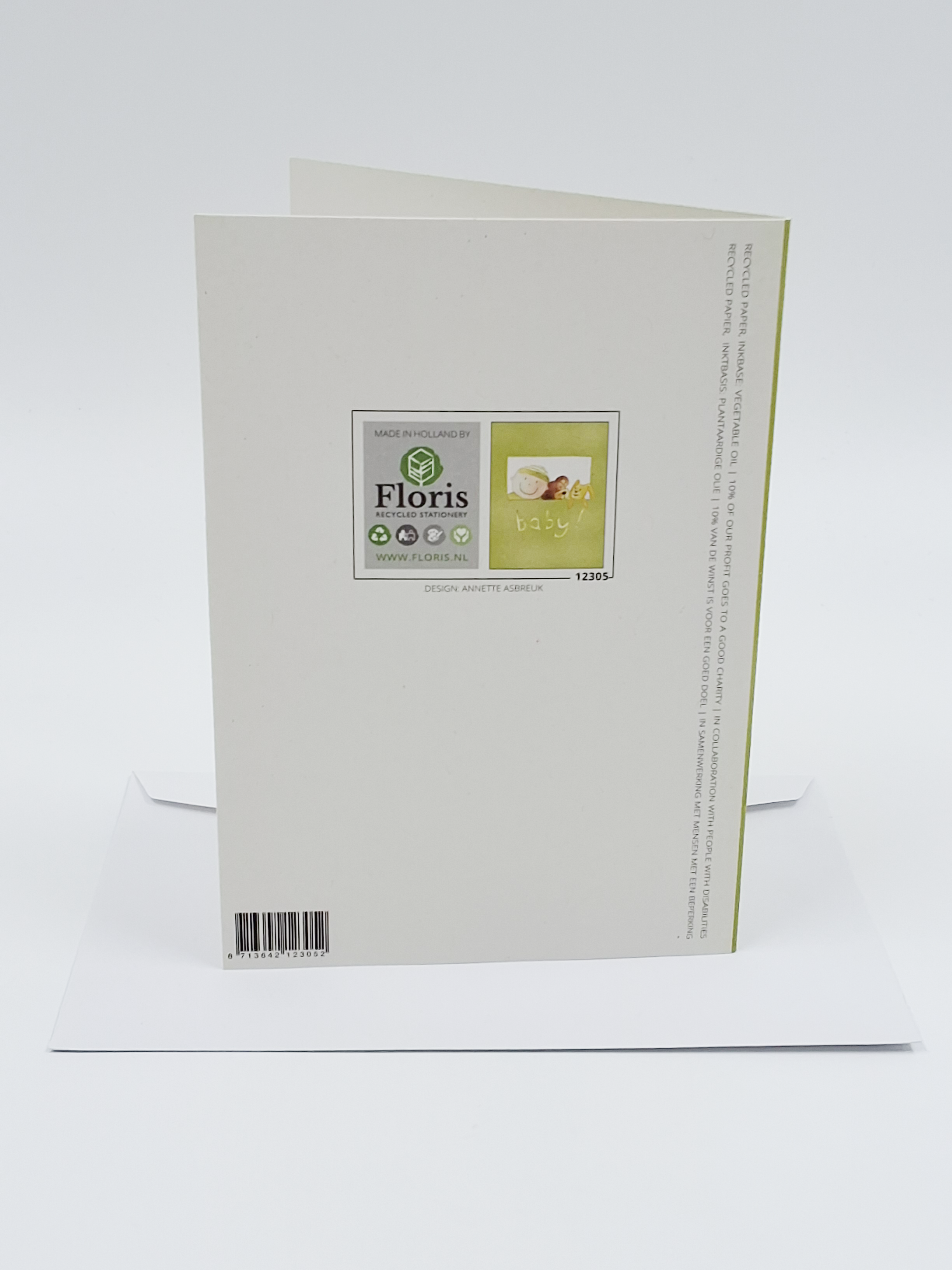 Onze wenskaarten zijn gemaakt van gerecycled papier en bedrukt met inkt op basis van plantaardige olie.