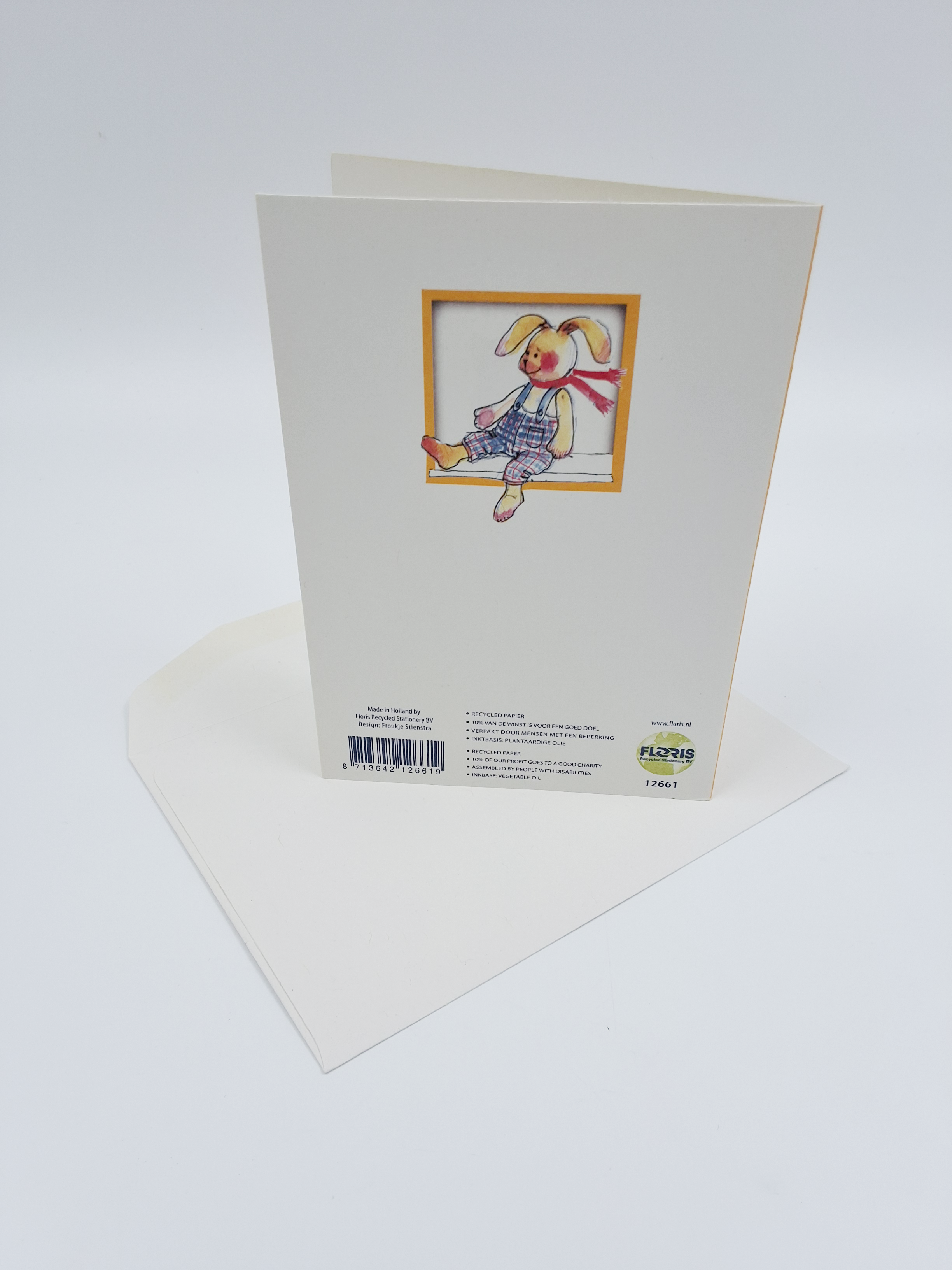 Onze wenskaarten zijn gemaakt van gerecycled papier en bedrukt met inkt op basis van plantaardige olie.