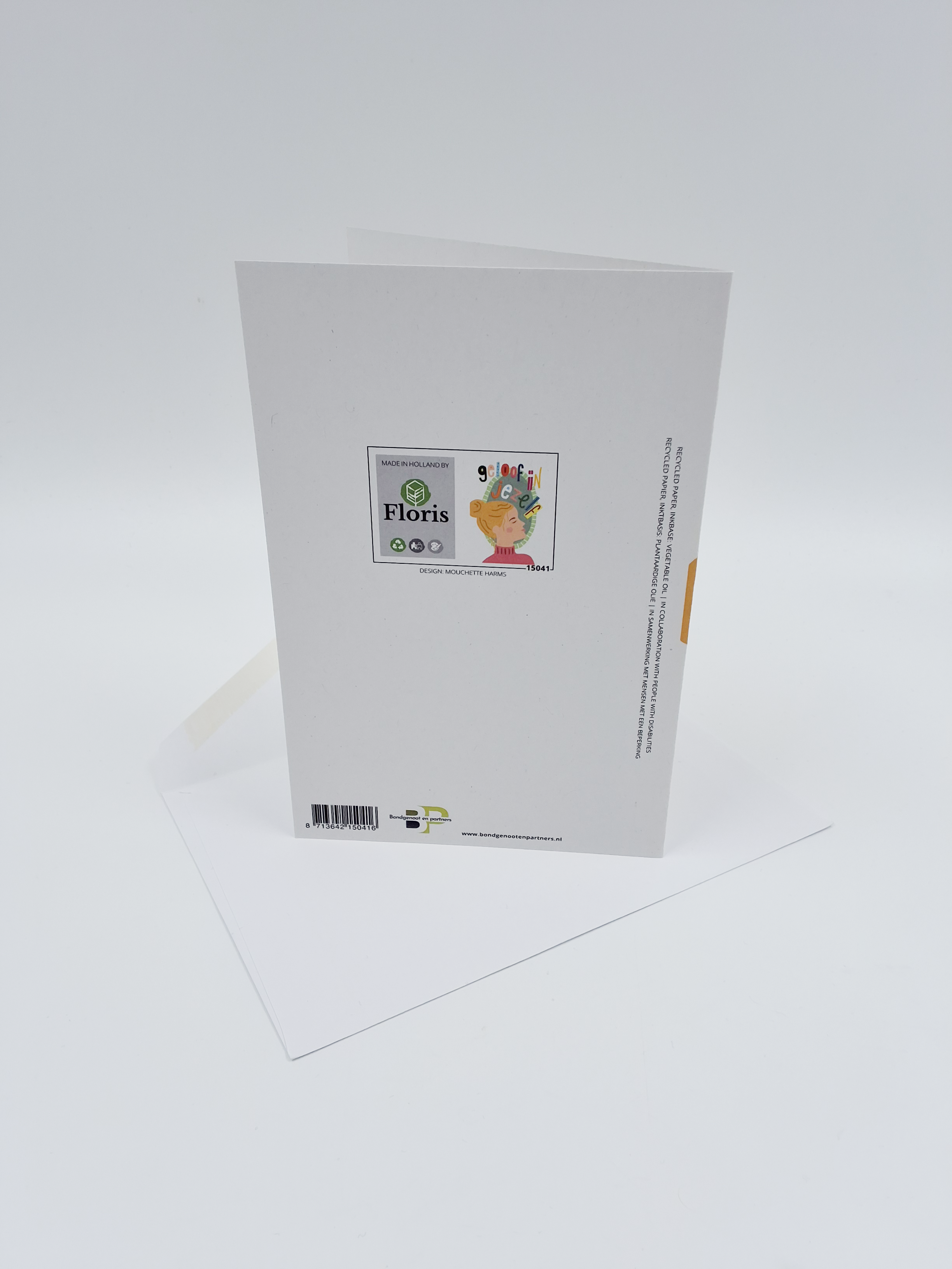 Onze wenskaarten zijn gemaakt van gerecycled papier en bedrukt met inkt op basis van plantaardige olie.