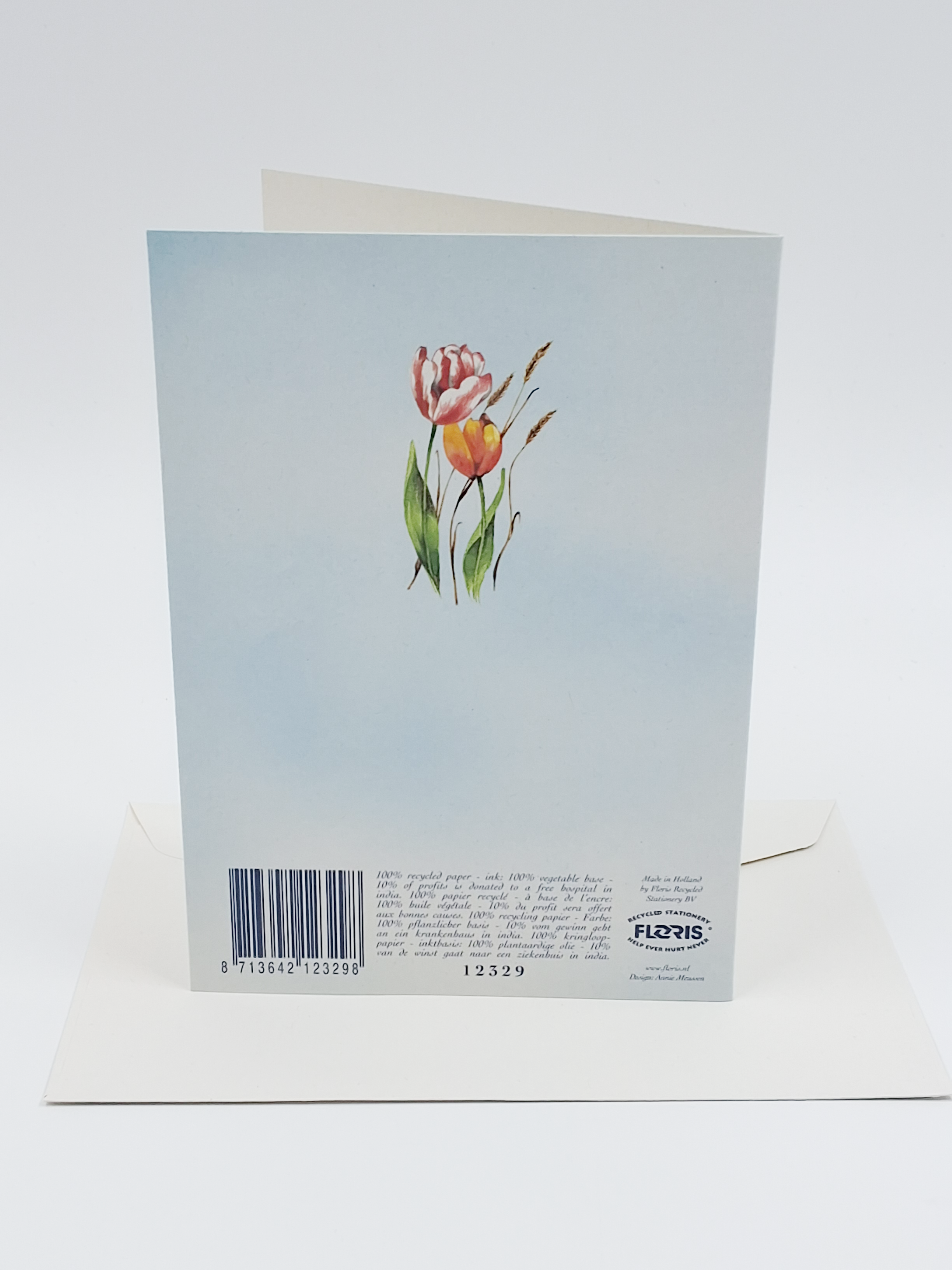 Onze wenskaarten zijn gemaakt van gerecycled papier en bedrukt met inkt op basis van plantaardige olie.