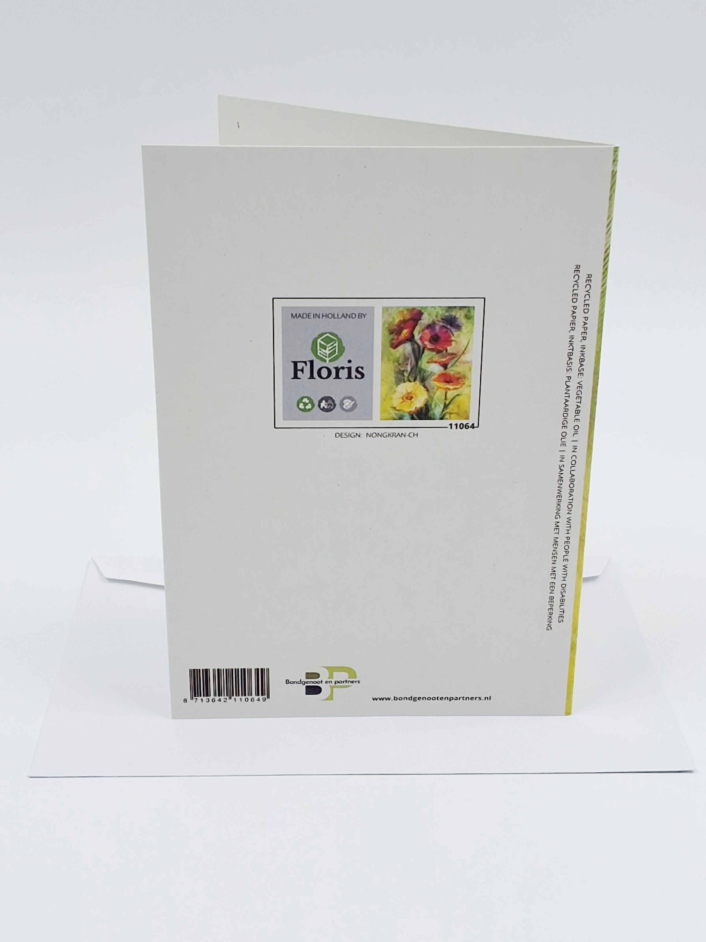 Onze wenskaarten zijn gemaakt van gerecycled papier en bedrukt met inkt op basis van plantaardige olie.