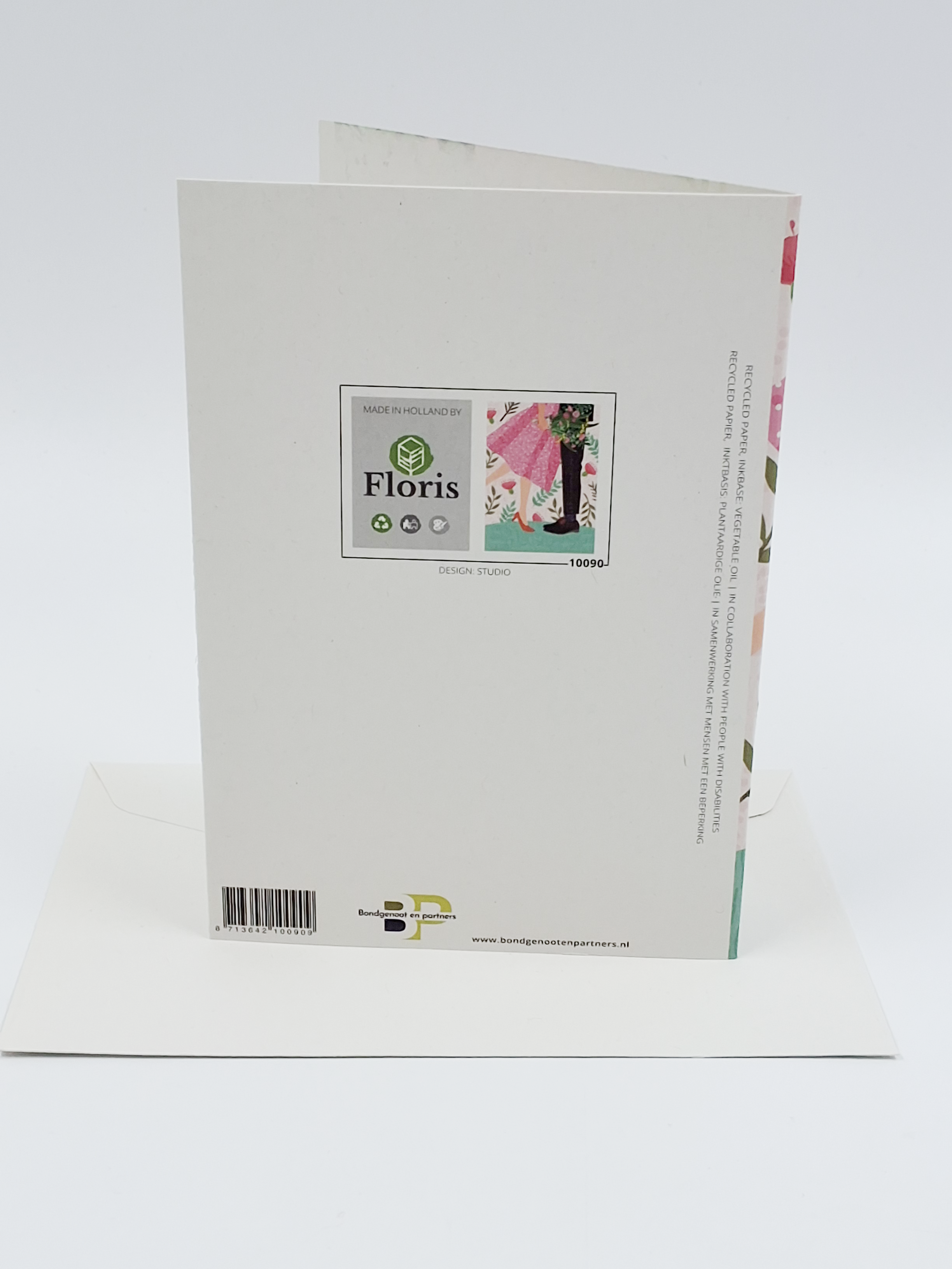 Onze wenskaarten zijn gemaakt van gerecycled papier en bedrukt met inkt op basis van plantaardige olie.