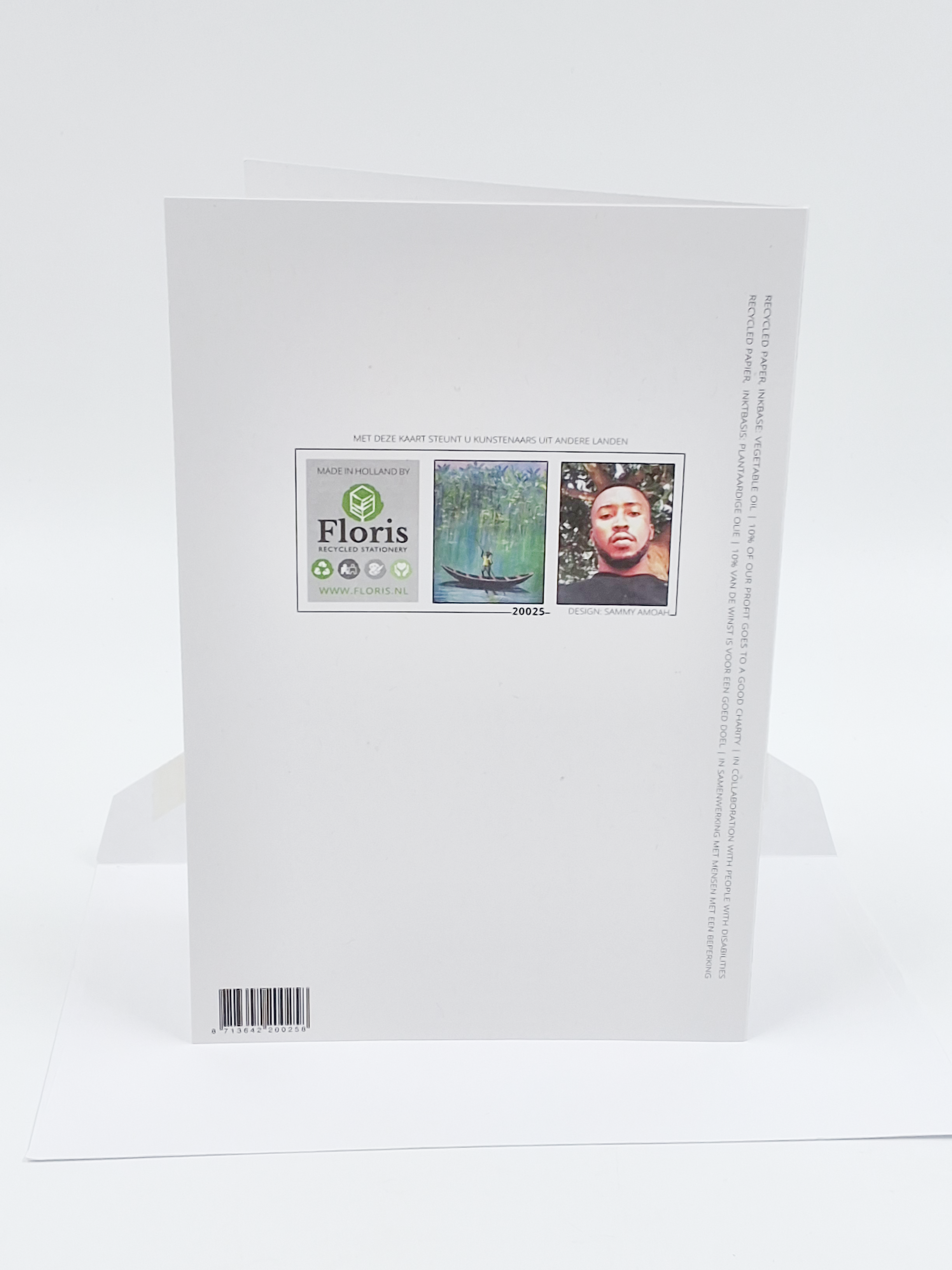 Onze wenskaarten zijn gemaakt van gerecycled papier en bedrukt met inkt op basis van plantaardige olie.