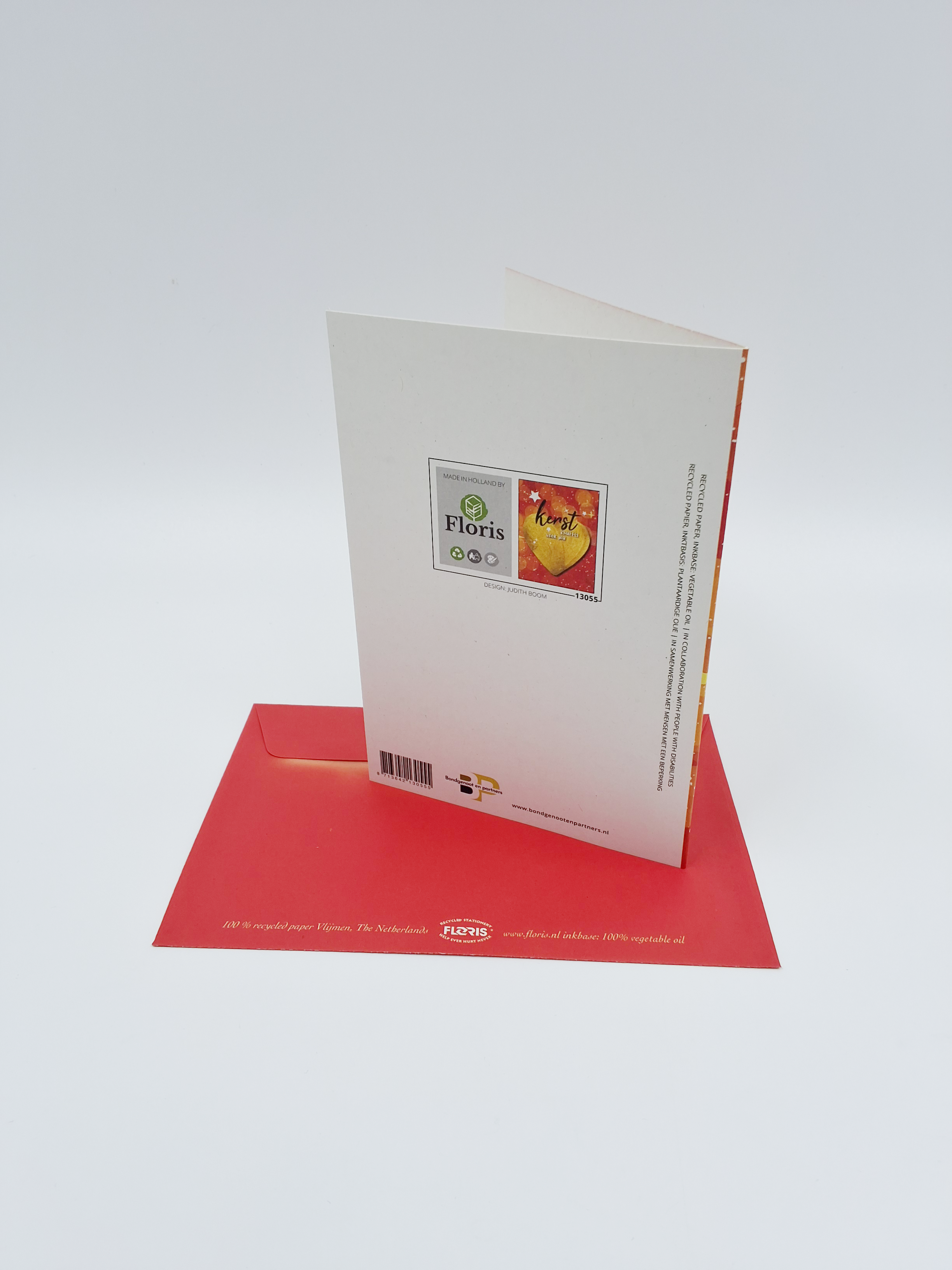 Onze kerstkaarten zijn gemaakt van gerecycled papier en bedrukt met inkt op basis van plantaardige olie.
