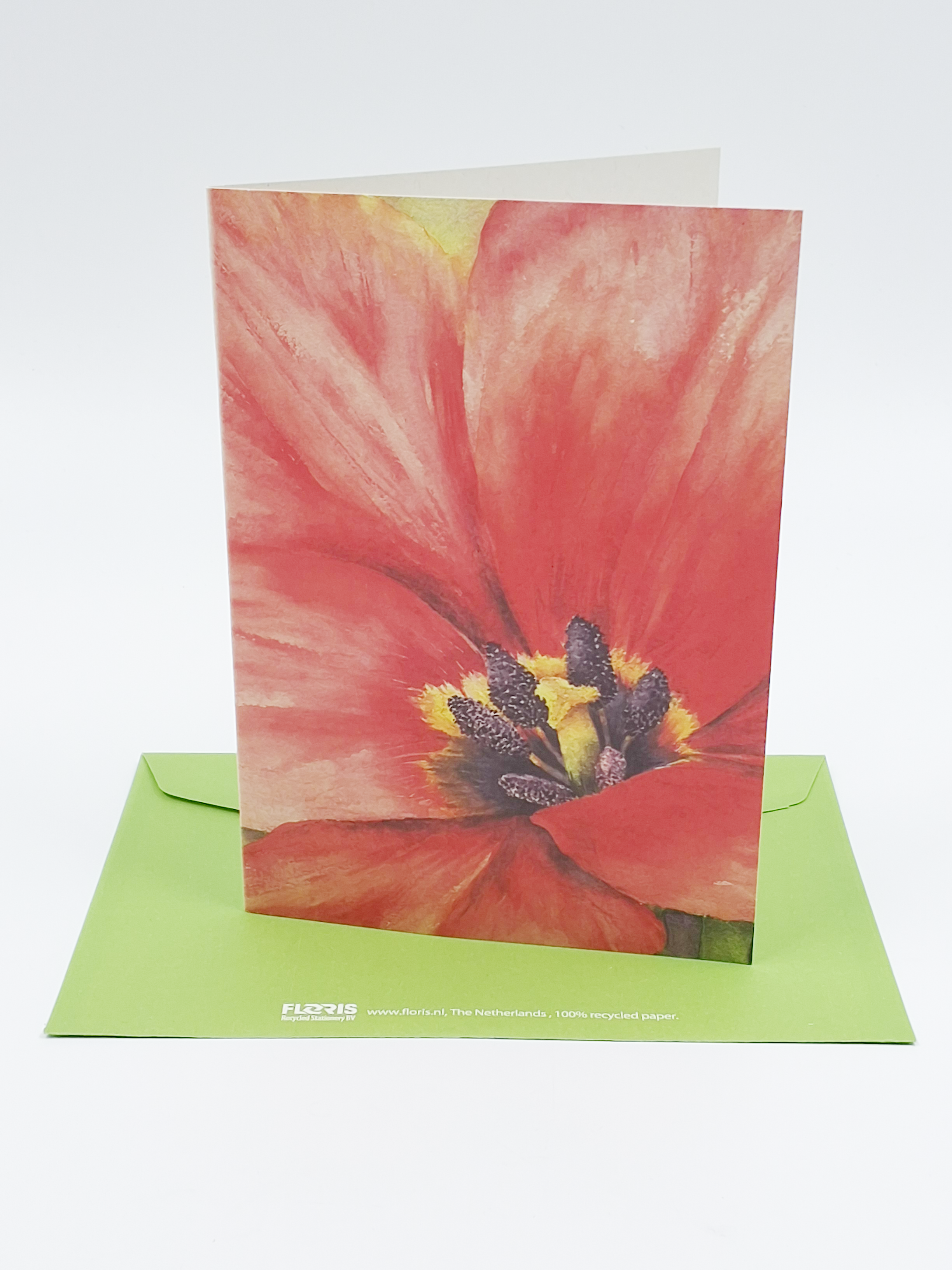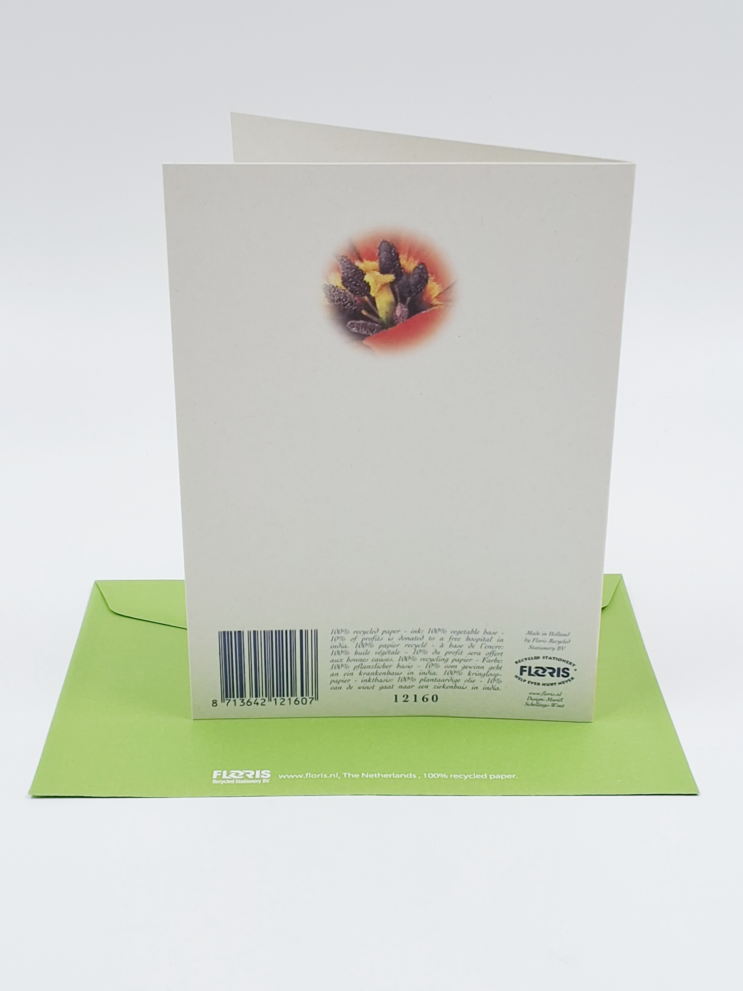 Onze wenskaarten zijn gemaakt van gerecycled papier en bedrukt met inkt op basis van plantaardige olie.