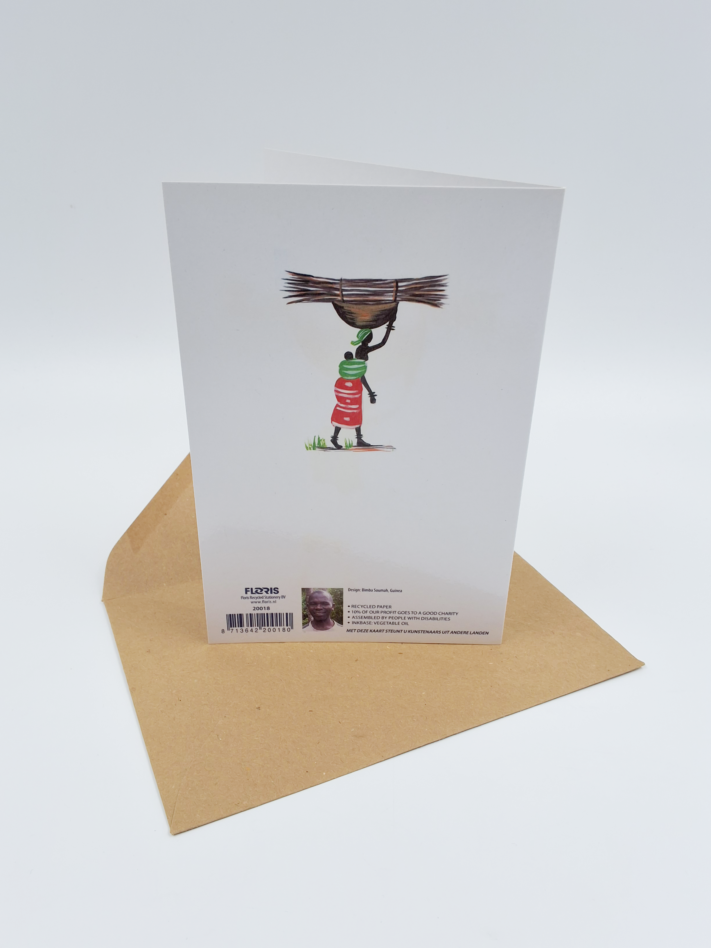Onze wenskaarten zijn gemaakt van gerecycled papier en bedrukt met inkt op basis van plantaardige olie.