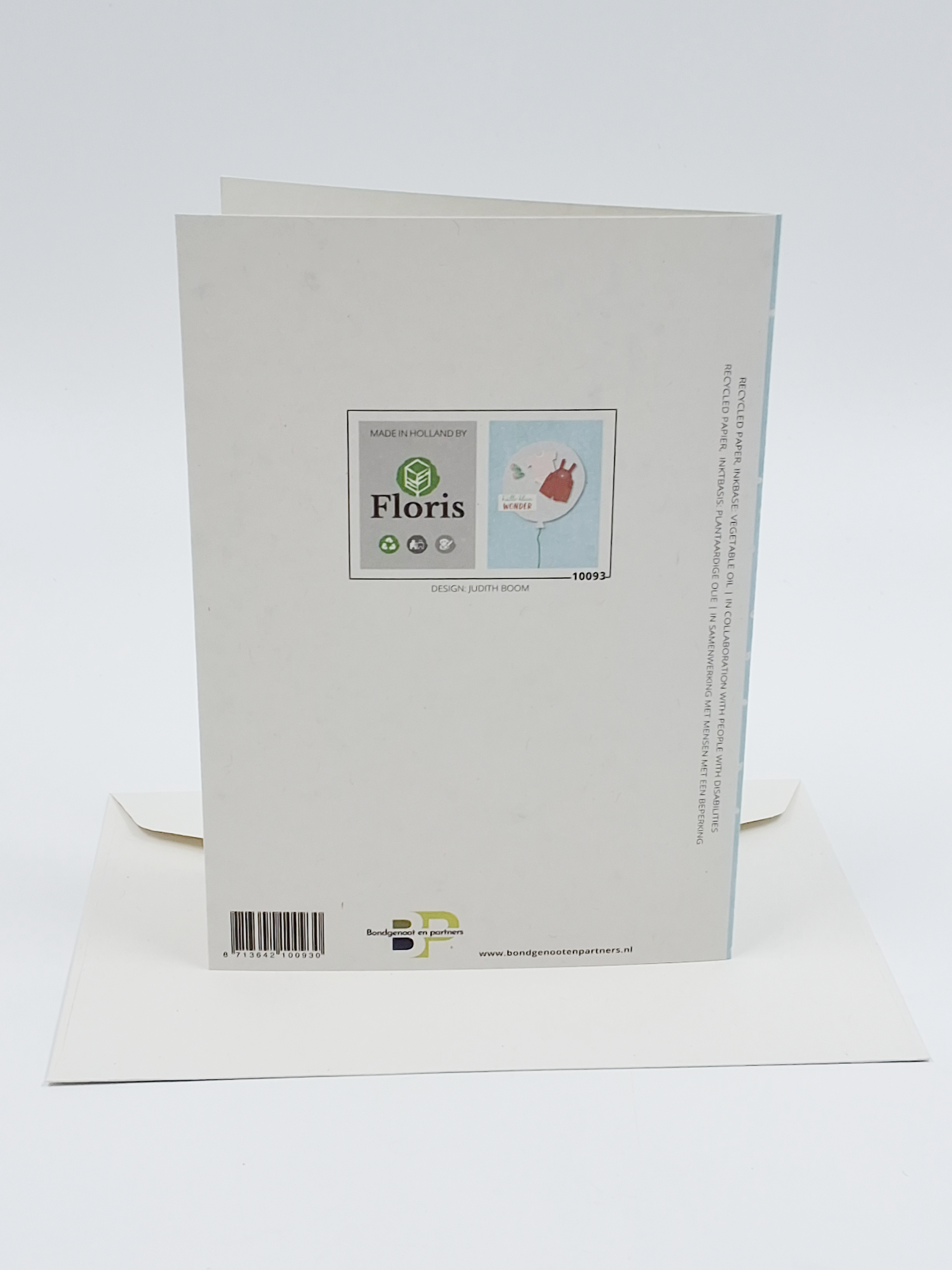 Onze wenskaarten zijn gemaakt van gerecycled papier en bedrukt met inkt op basis van plantaardige olie.