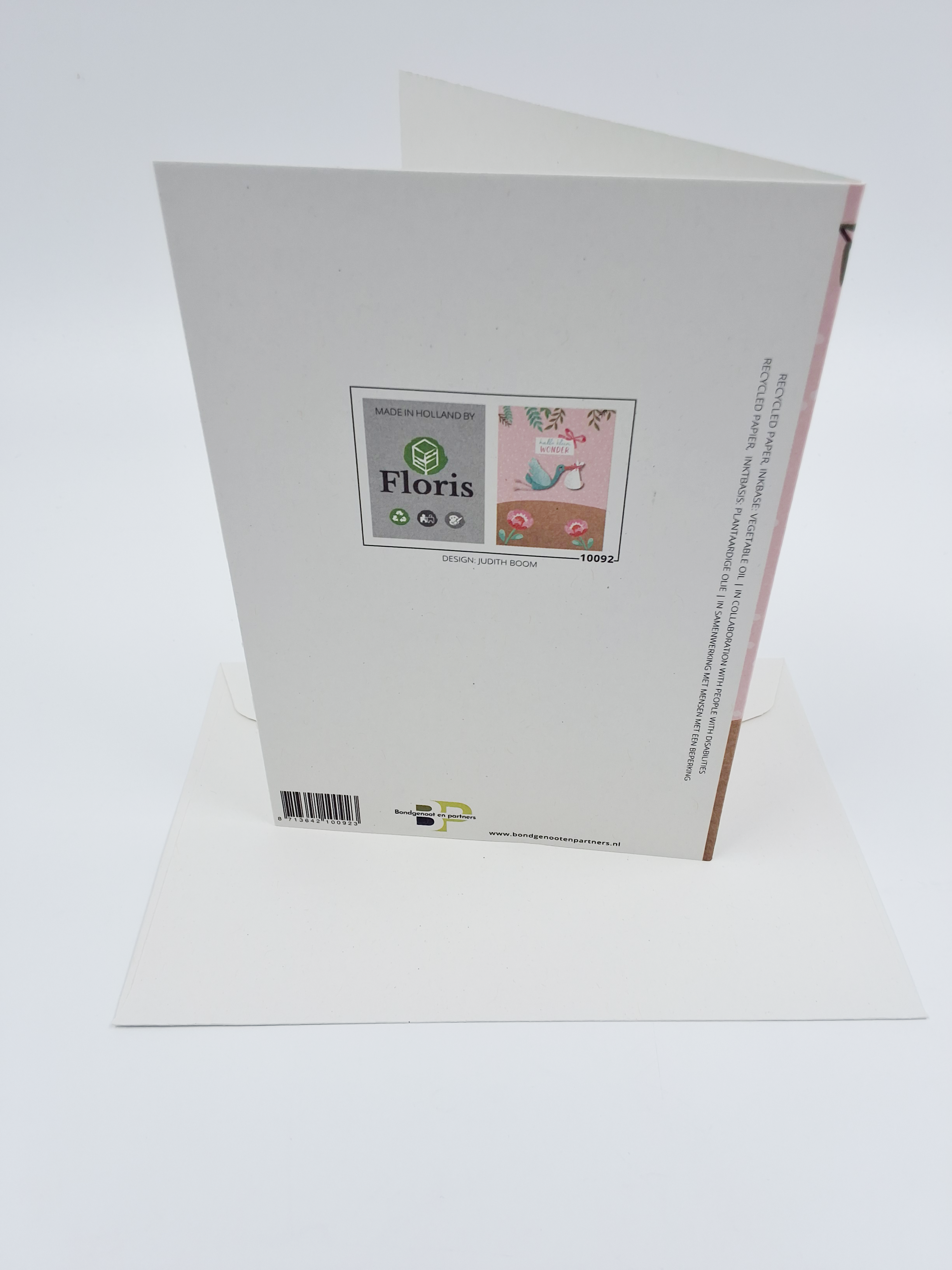 Onze wenskaarten zijn gemaakt van gerecycled papier en bedrukt met inkt op basis van plantaardige olie.