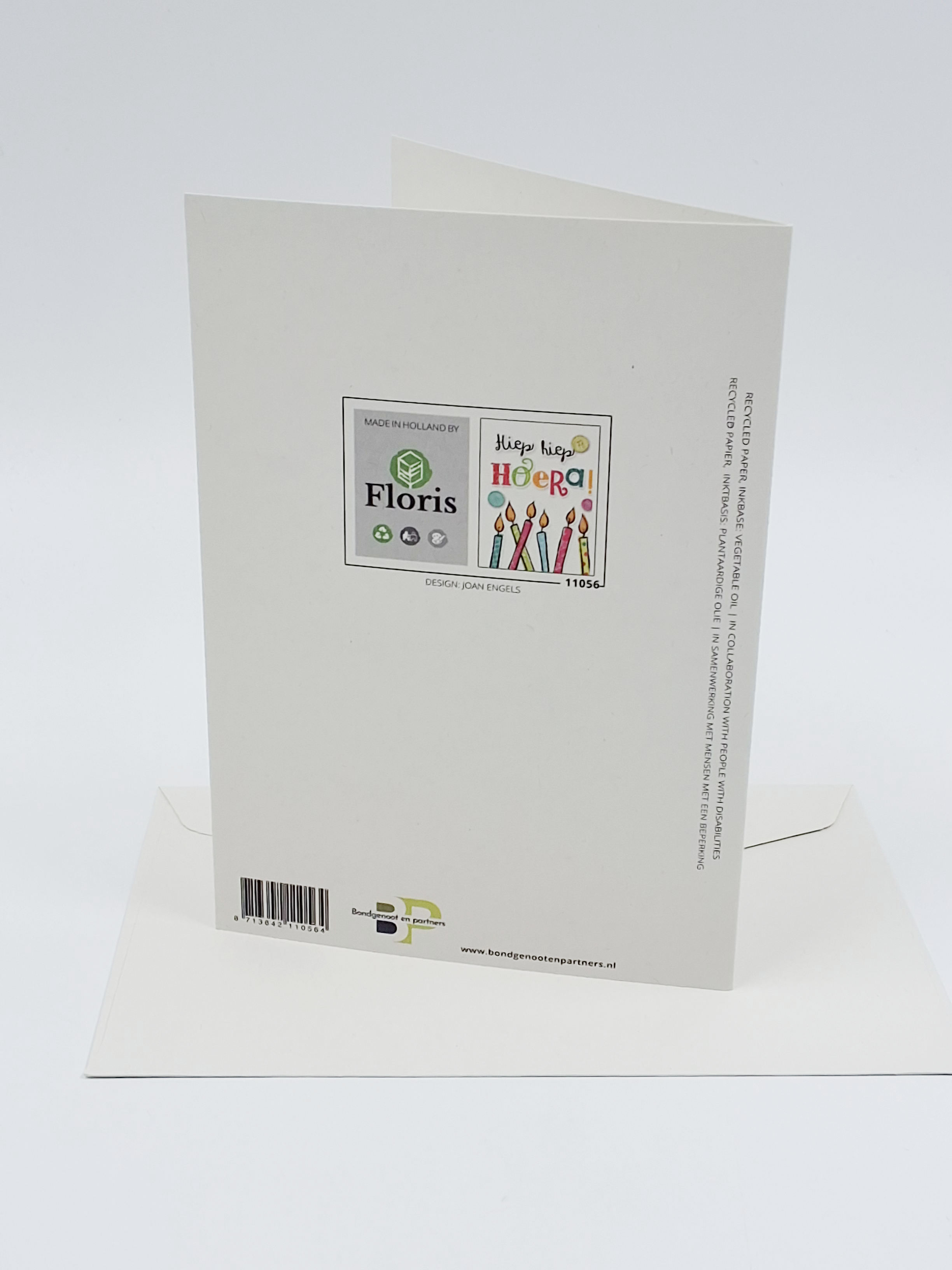 Onze wenskaarten zijn gemaakt van gerecycled papier en bedrukt met inkt op basis van plantaardige olie.