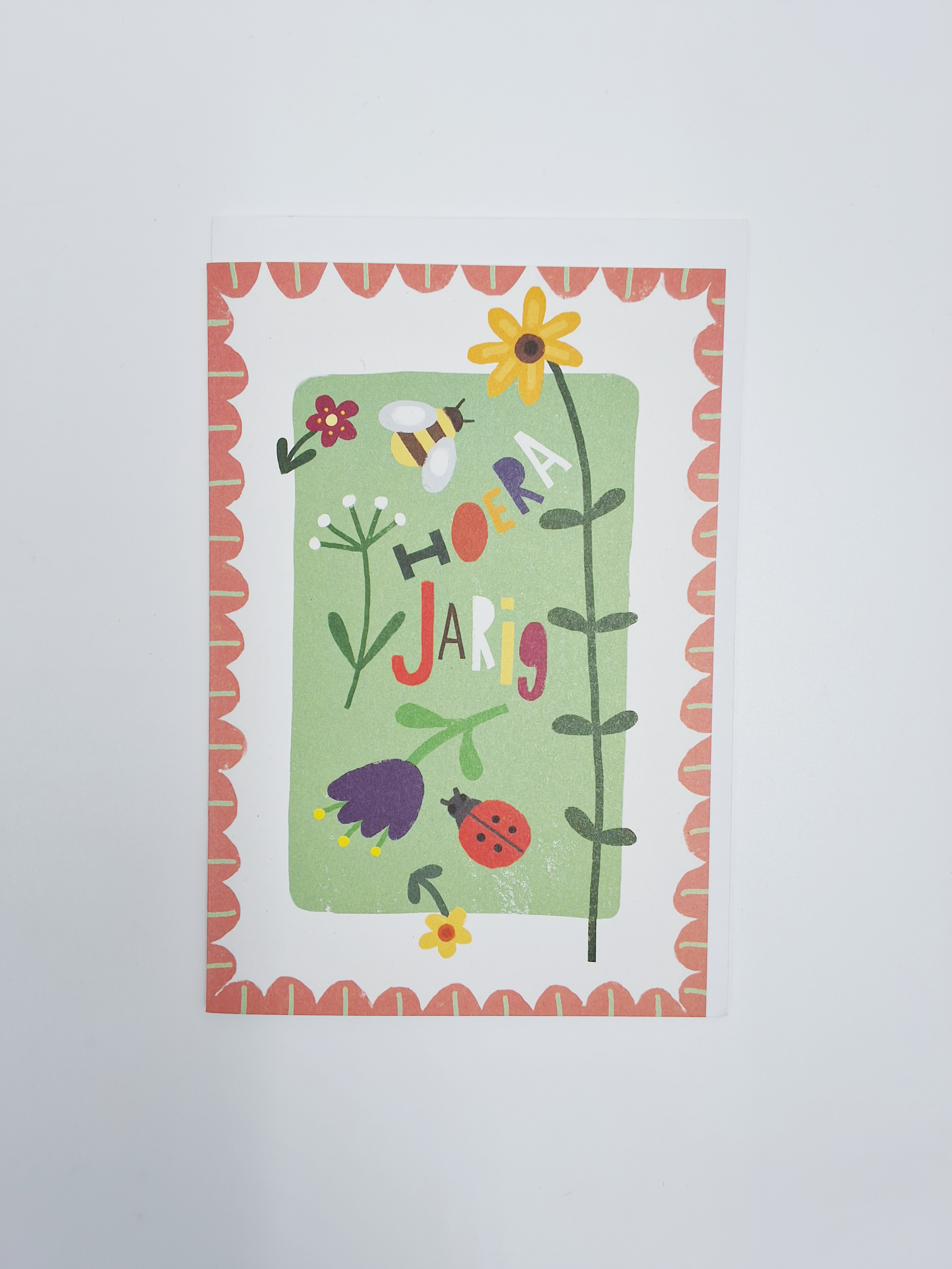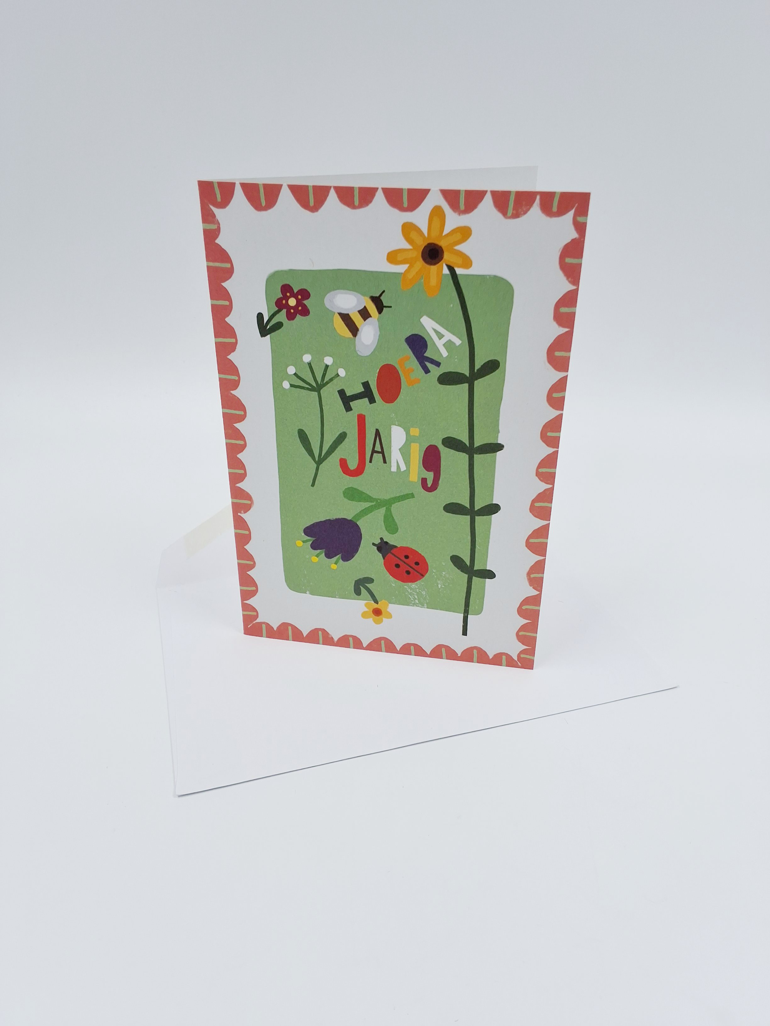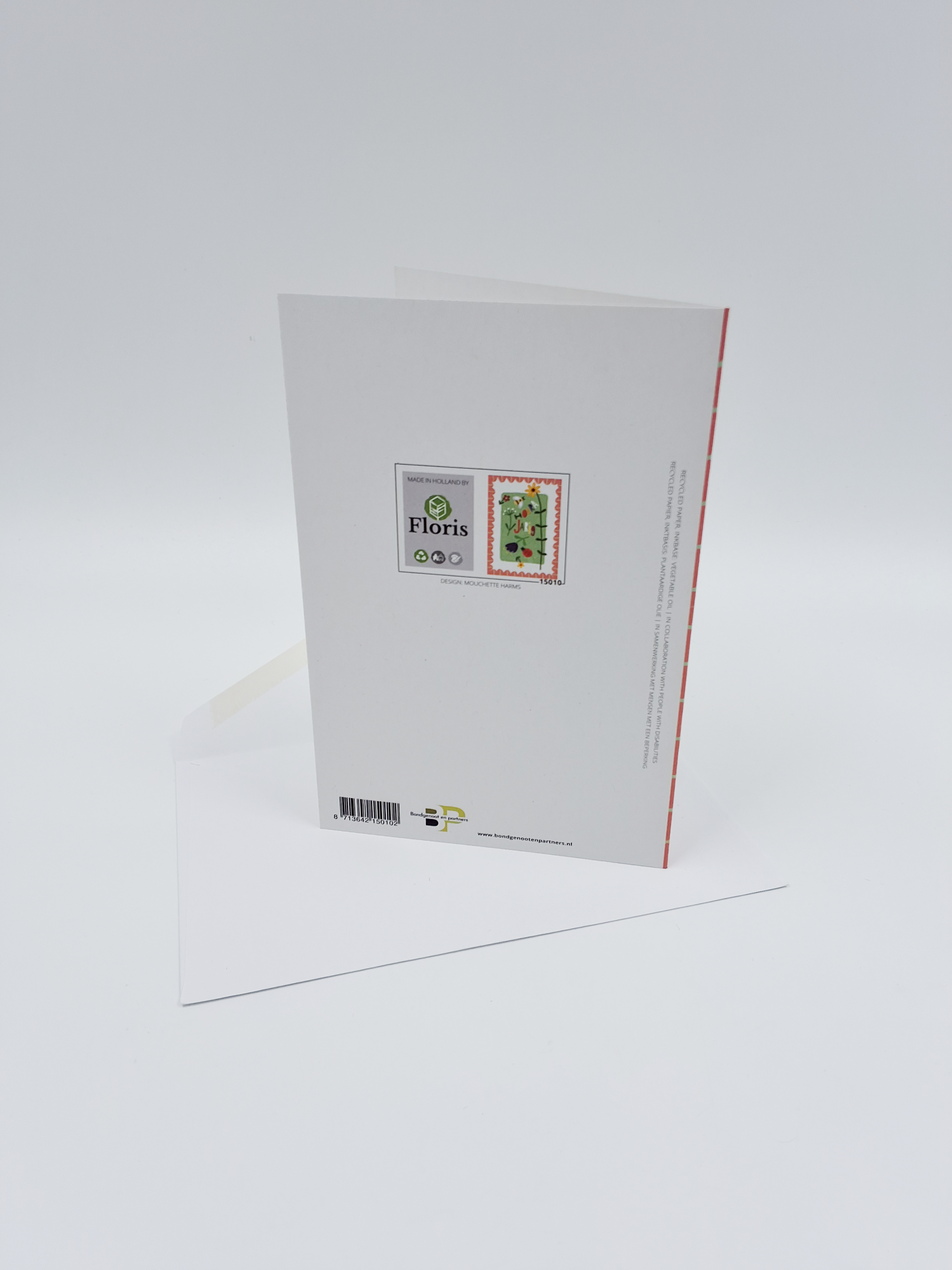Deze wenskaart is iets groter dan een standaard wenskaart en heeft geen plastiek verpakking. Elke kaart komt met een passende envelop.