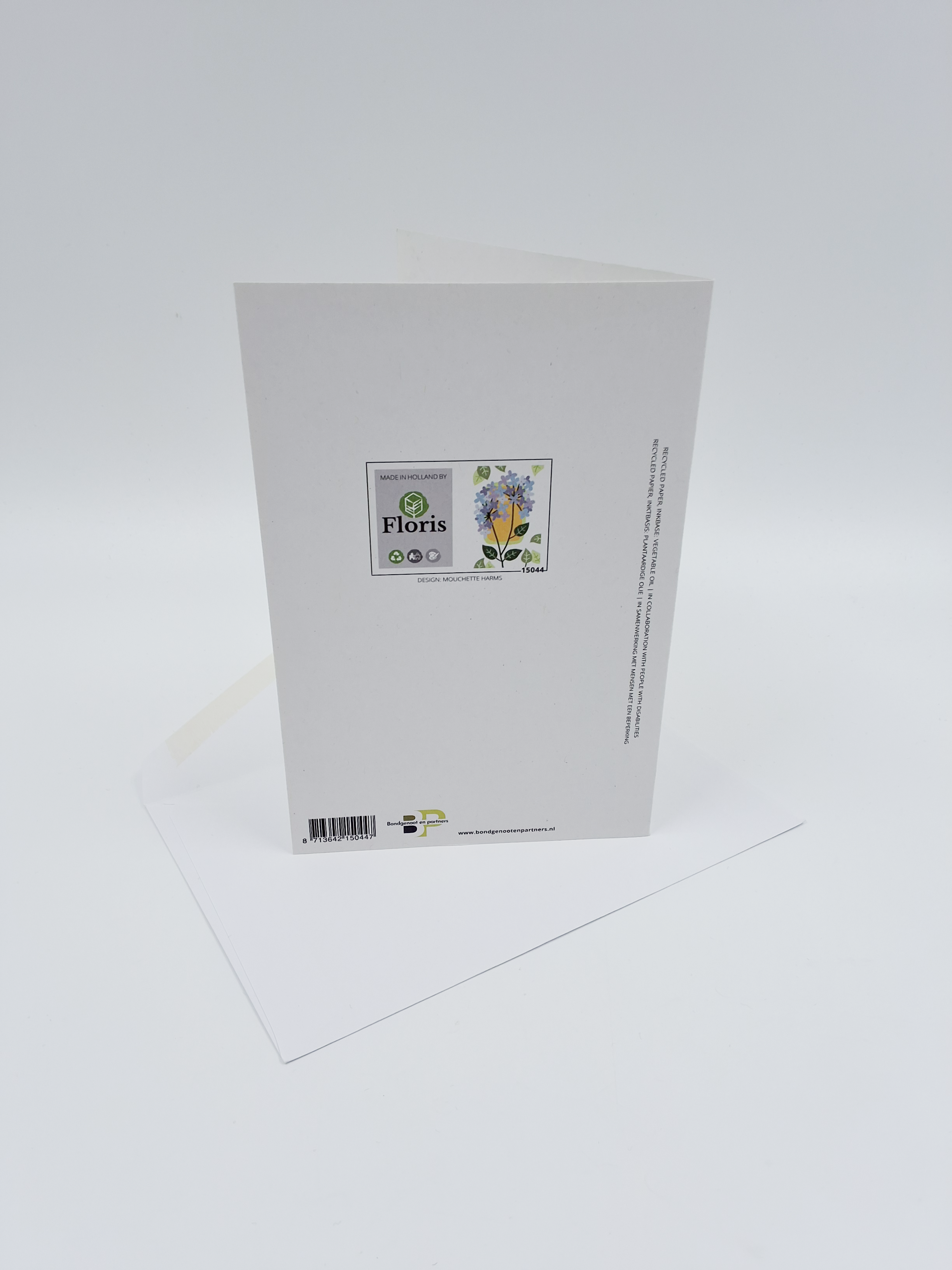 Deze wenskaart is iets groter dan een standaard wenskaart en heeft geen plastiek verpakking. Elke kaart komt met een passende envelop.