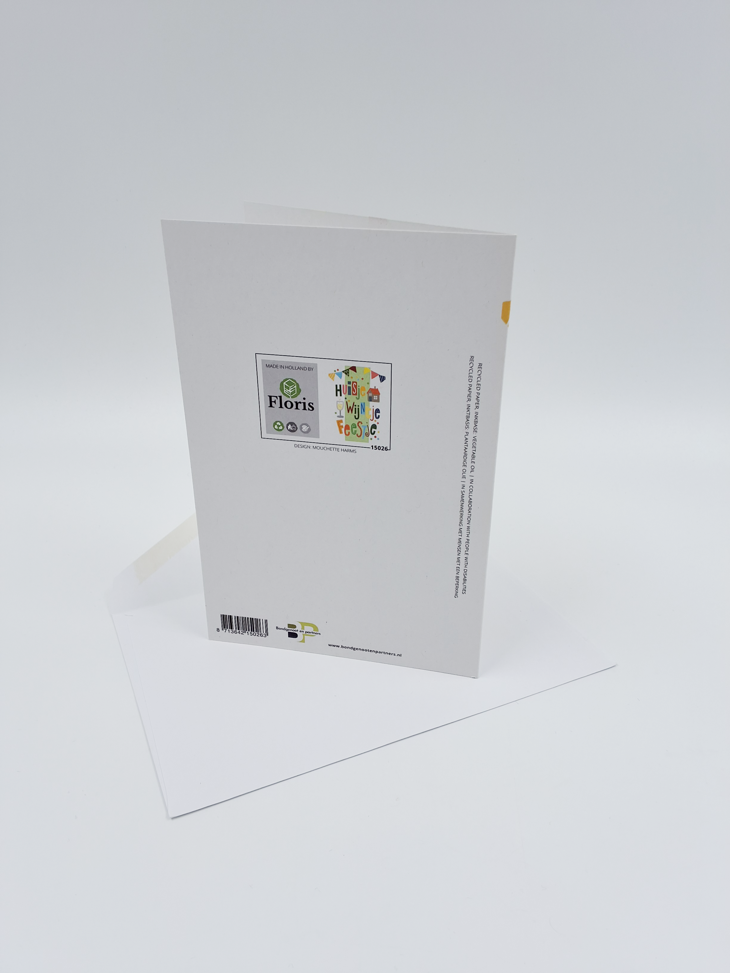 Onze wenskaarten zijn gemaakt van gerecycled papier en bedrukt met inkt op basis van plantaardige olie.