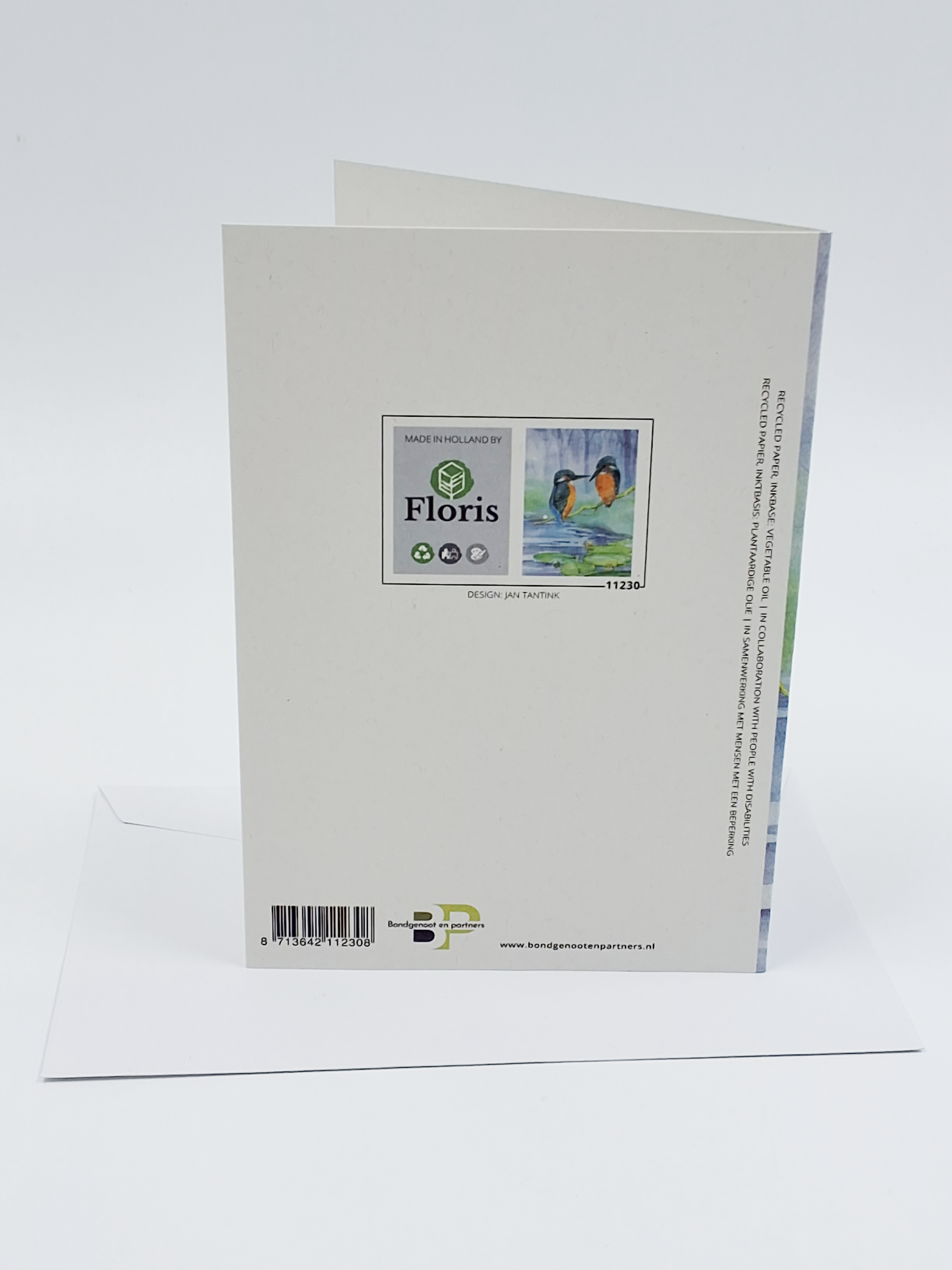Onze wenskaarten zijn gemaakt van gerecycled papier en bedrukt met inkt op basis van plantaardige olie.