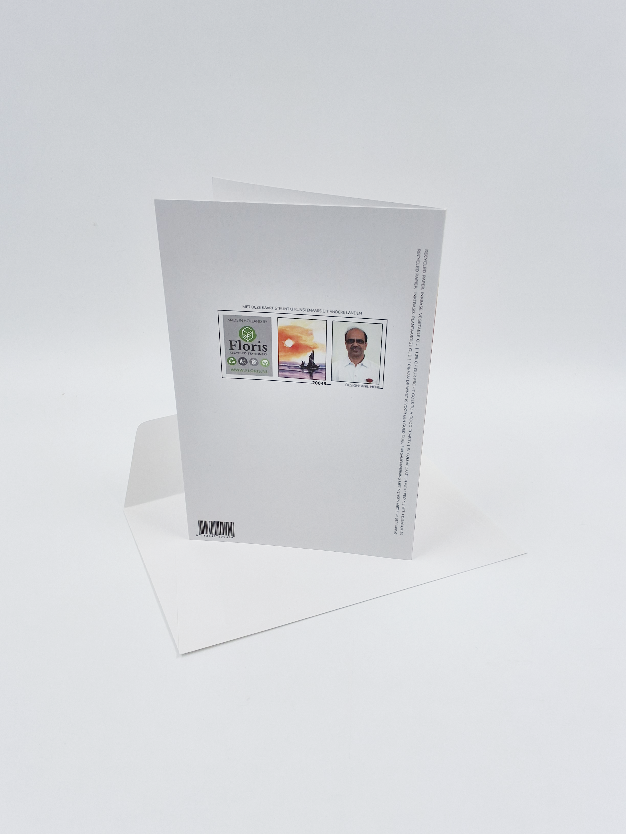 Onze wenskaarten zijn gemaakt van gerecycled papier en bedrukt met inkt op basis van plantaardige olie.