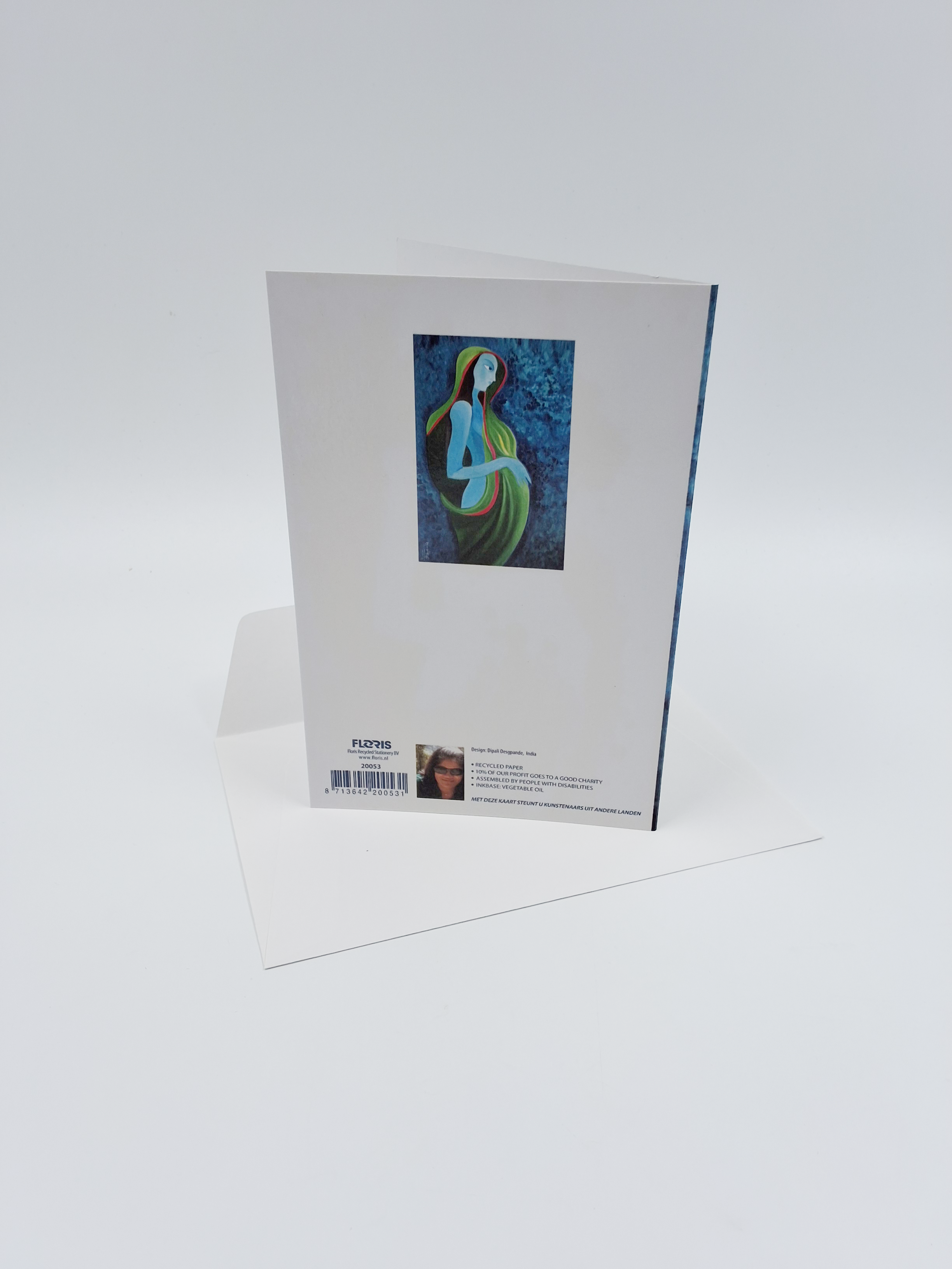 Onze wenskaarten zijn gemaakt van gerecycled papier en bedrukt met inkt op basis van plantaardige olie.