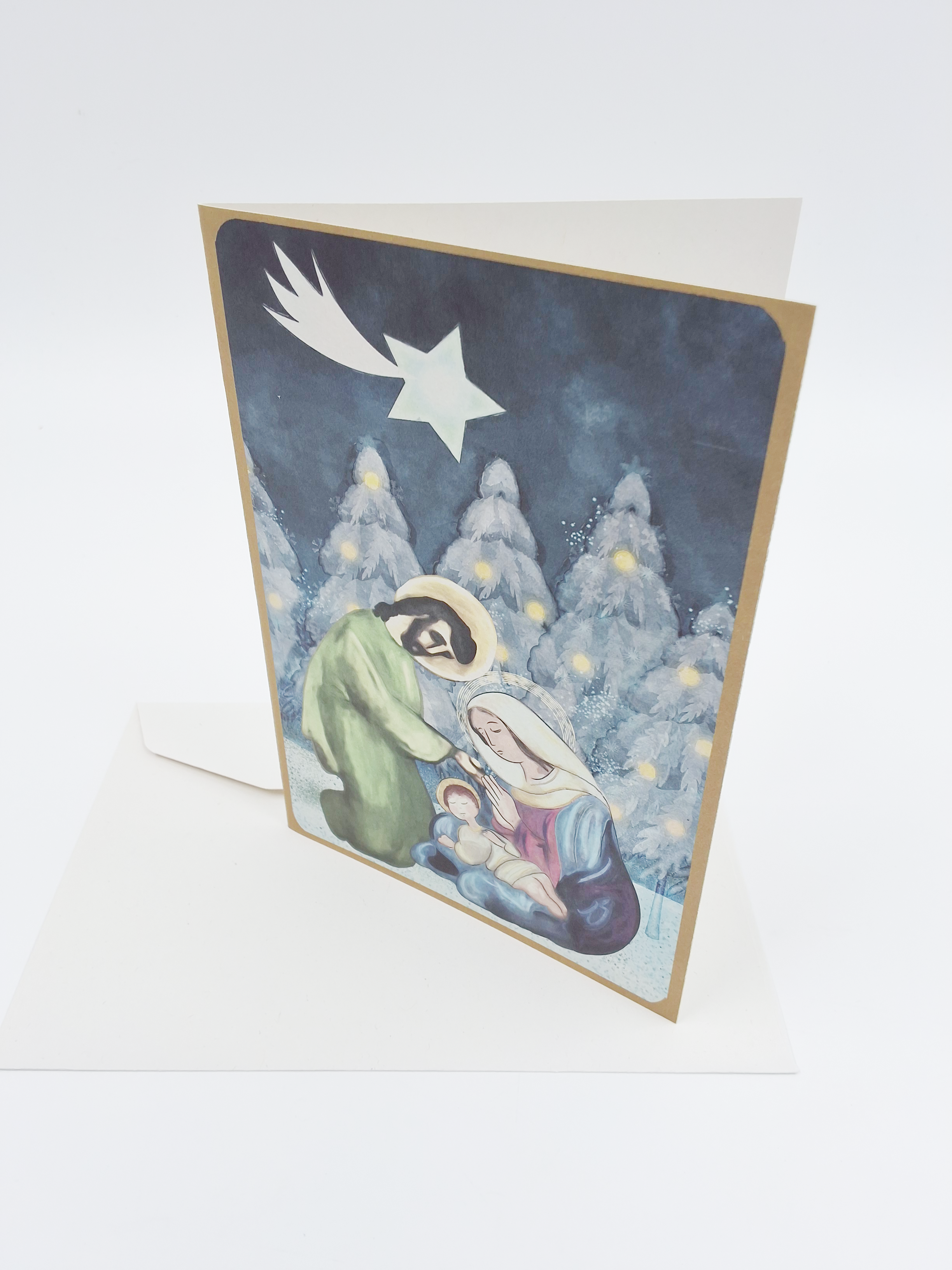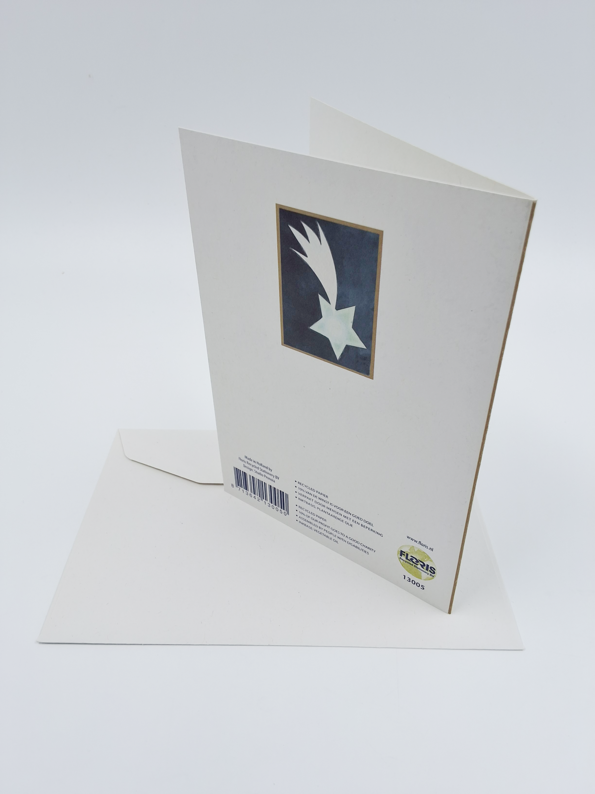 Onze kerstkaarten zijn gemaakt van gerecycled papier en bedrukt met inkt op basis van plantaardige olie.