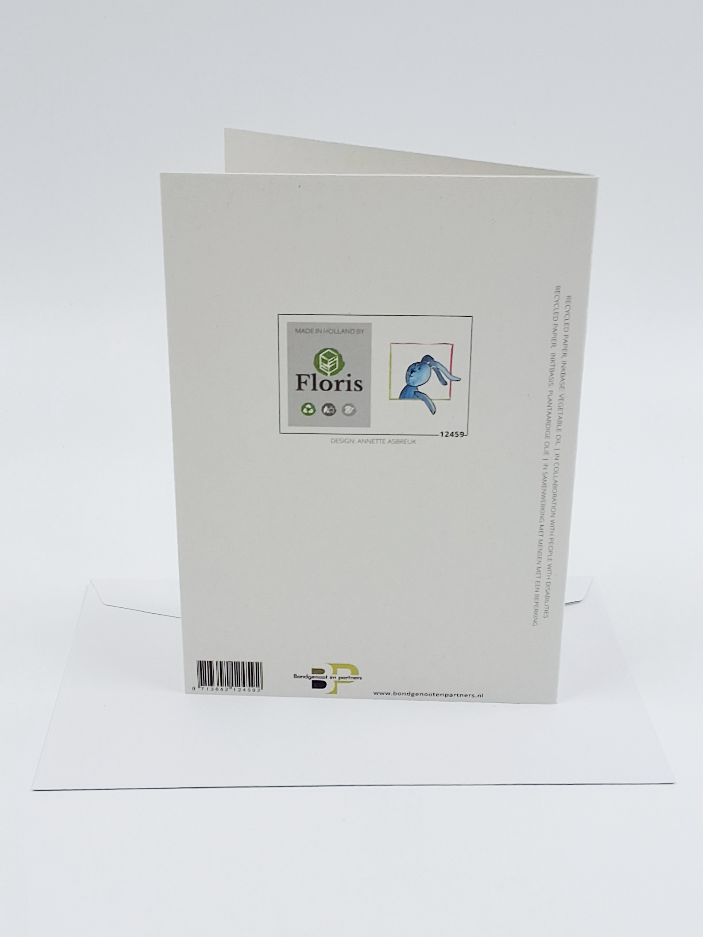 Onze wenskaarten zijn gemaakt van gerecycled papier en bedrukt met inkt op basis van plantaardige olie.