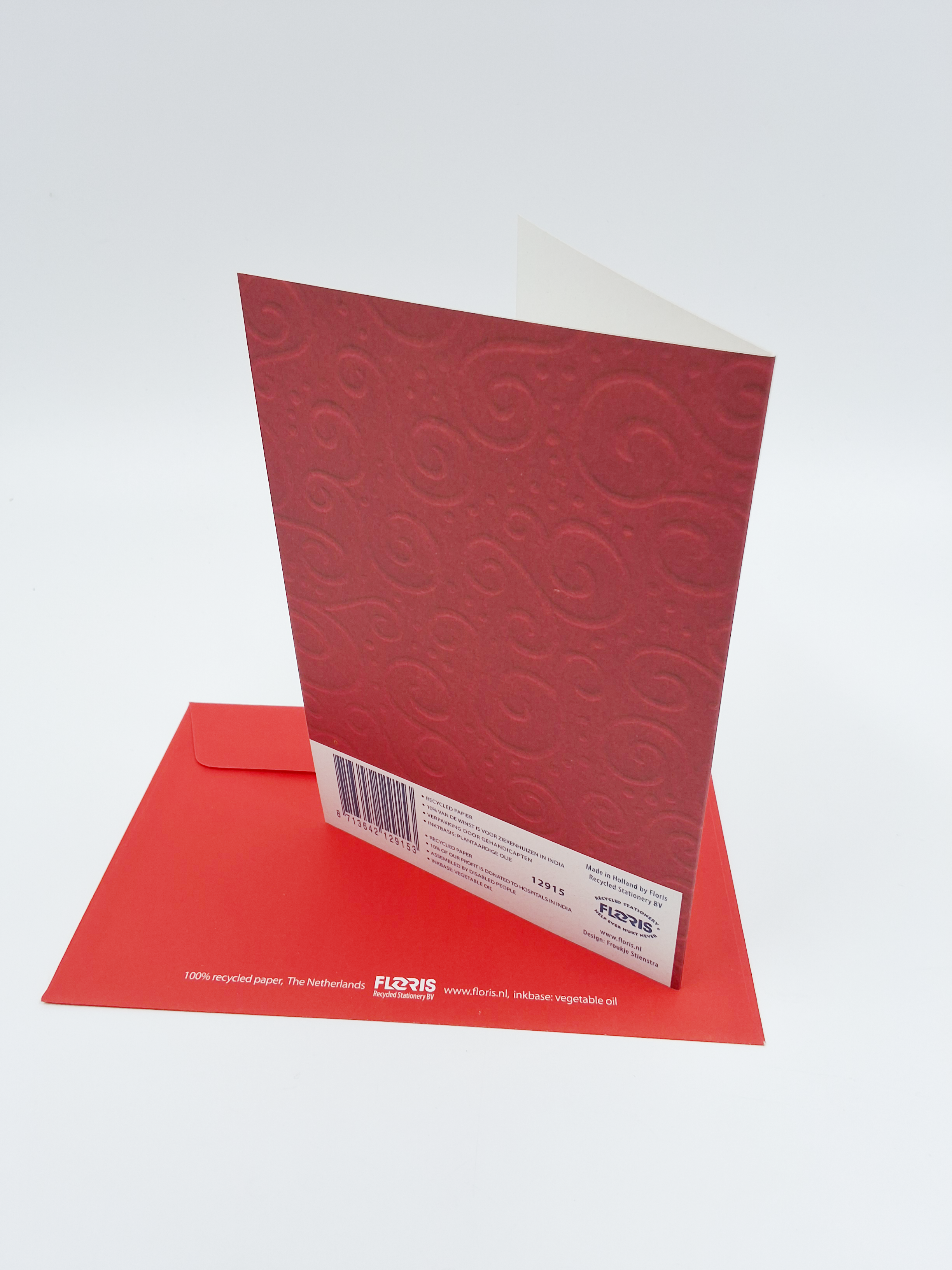 Onze kerstkaarten zijn gemaakt van gerecycled papier en bedrukt met inkt op basis van plantaardige olie.