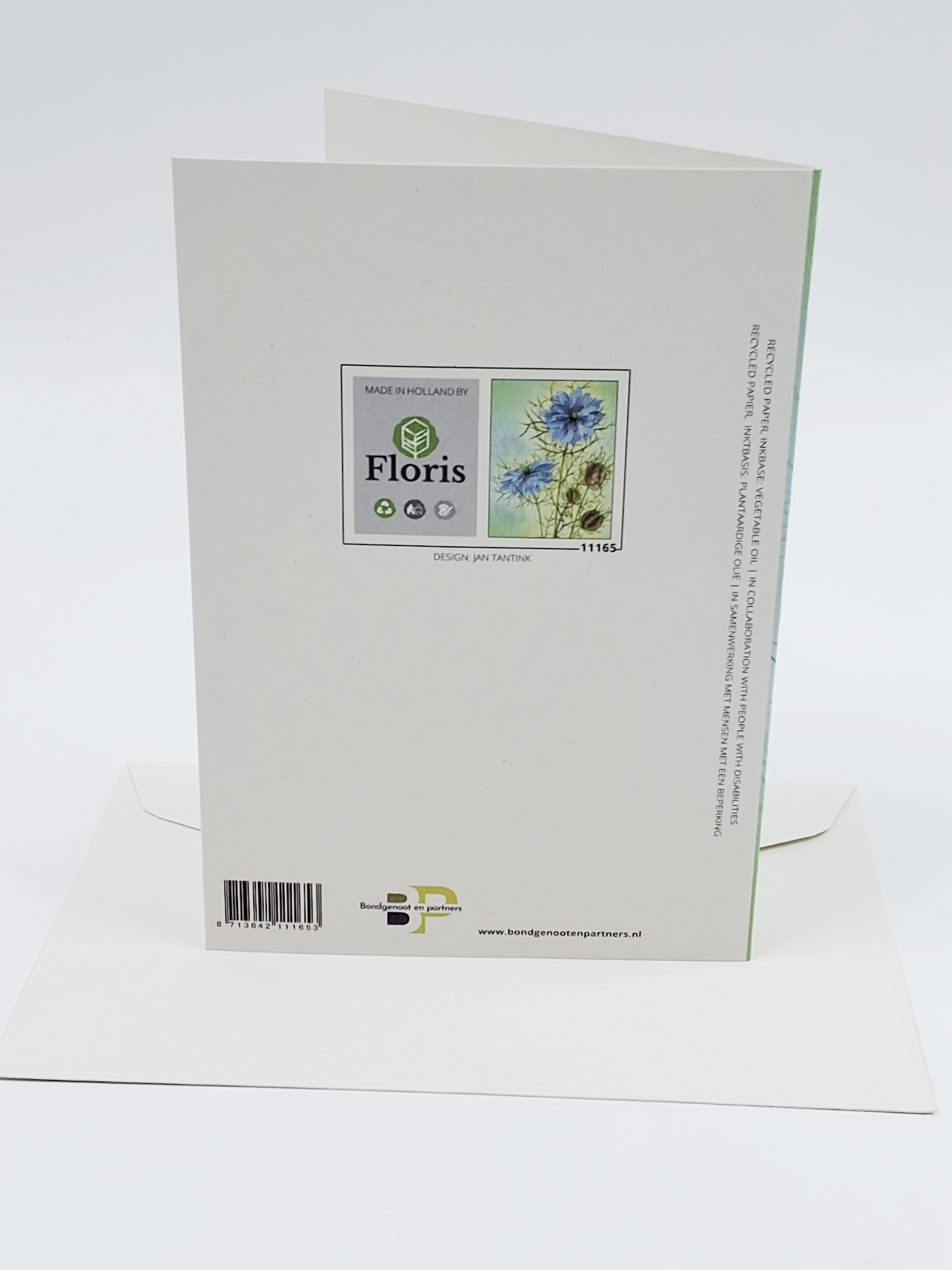 Onze wenskaarten zijn gemaakt van gerecycled papier en bedrukt met inkt op basis van plantaardige olie.